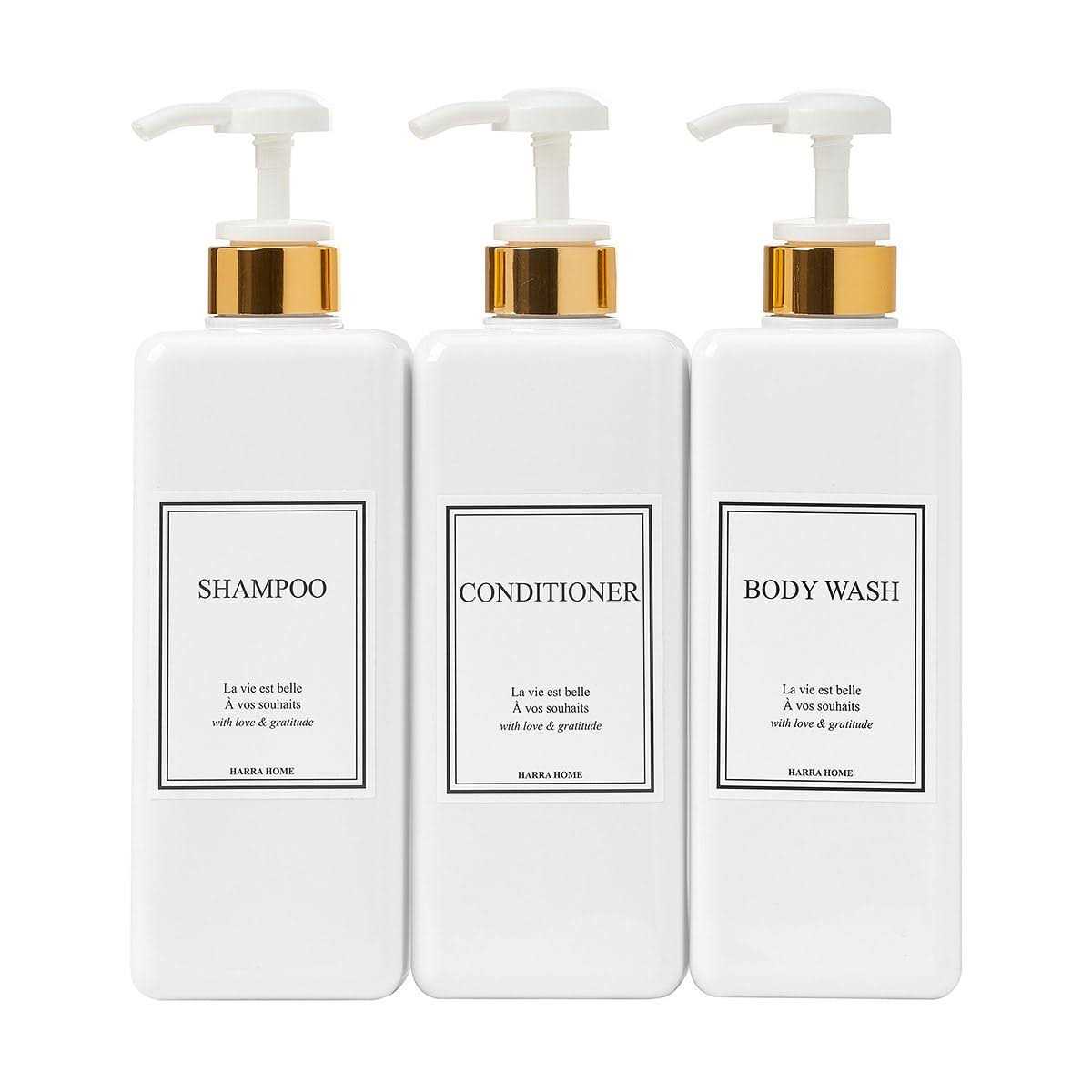 HARRA HOME Modern Gold Design Pump Bottle Set 27 oz Refillable Shampoo and Conditioner Dispenser Empty Shower Plastic Bottles with Pump for Bathroom