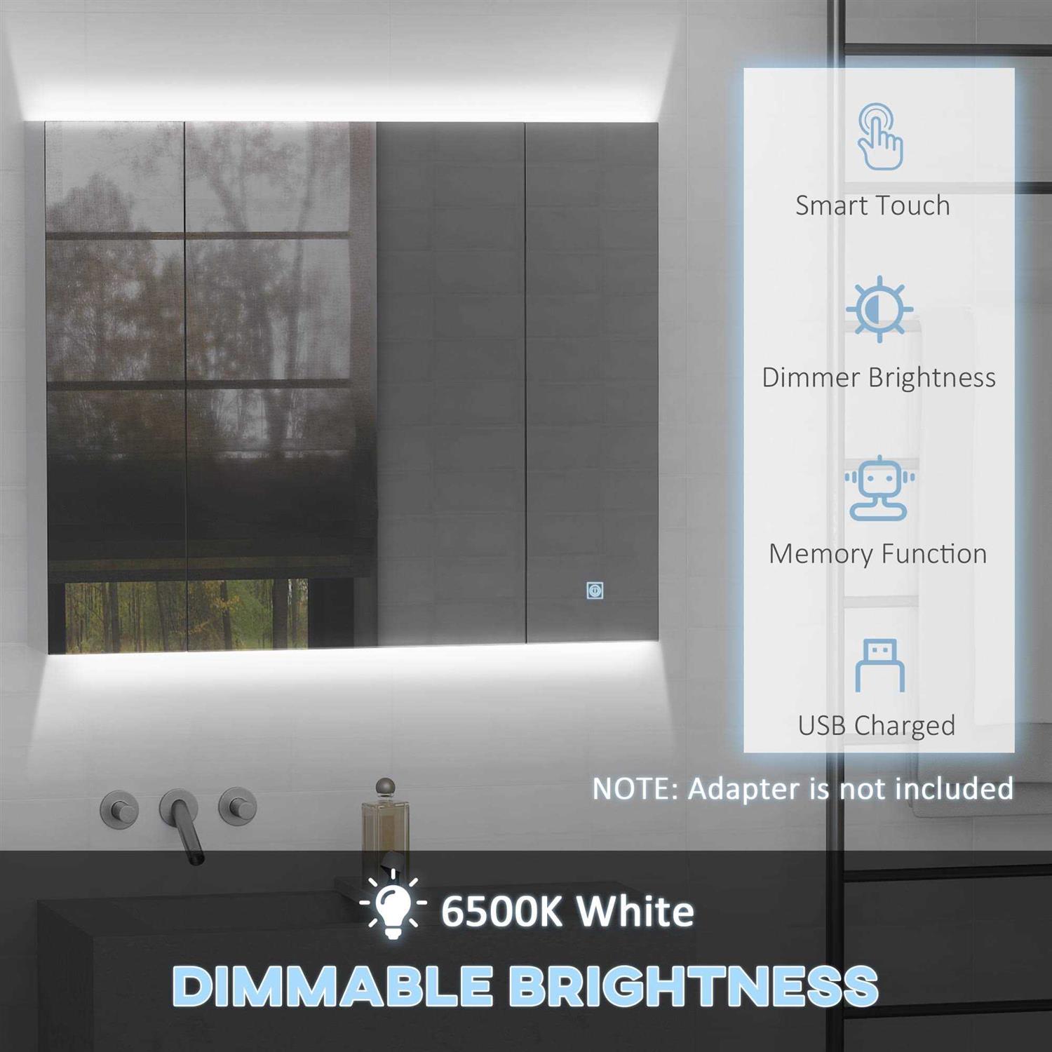 Kleankin LED Lighted Medicine Cabinet with Mirror Wall Mounted Bathroom Cabinet with 3 Cupboards