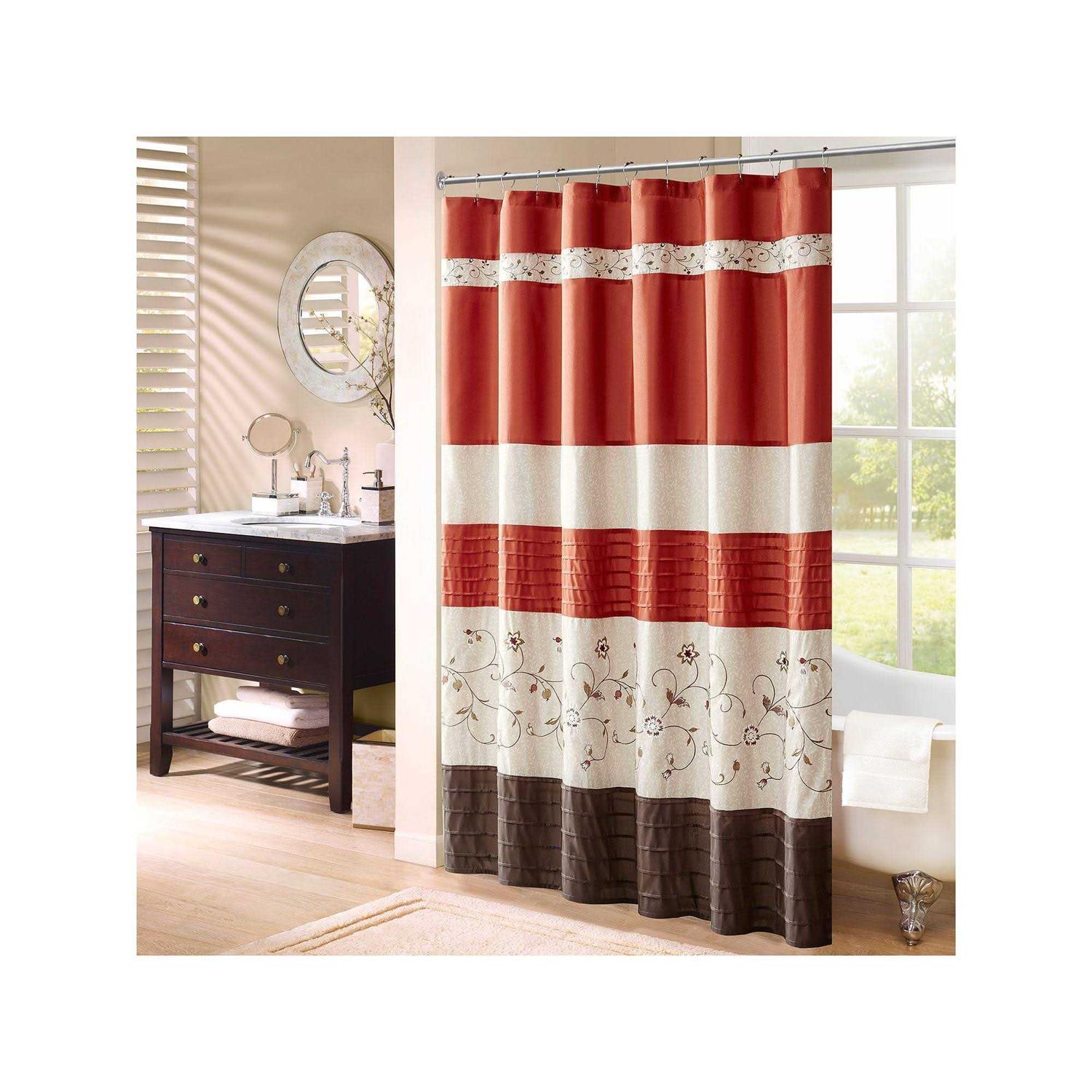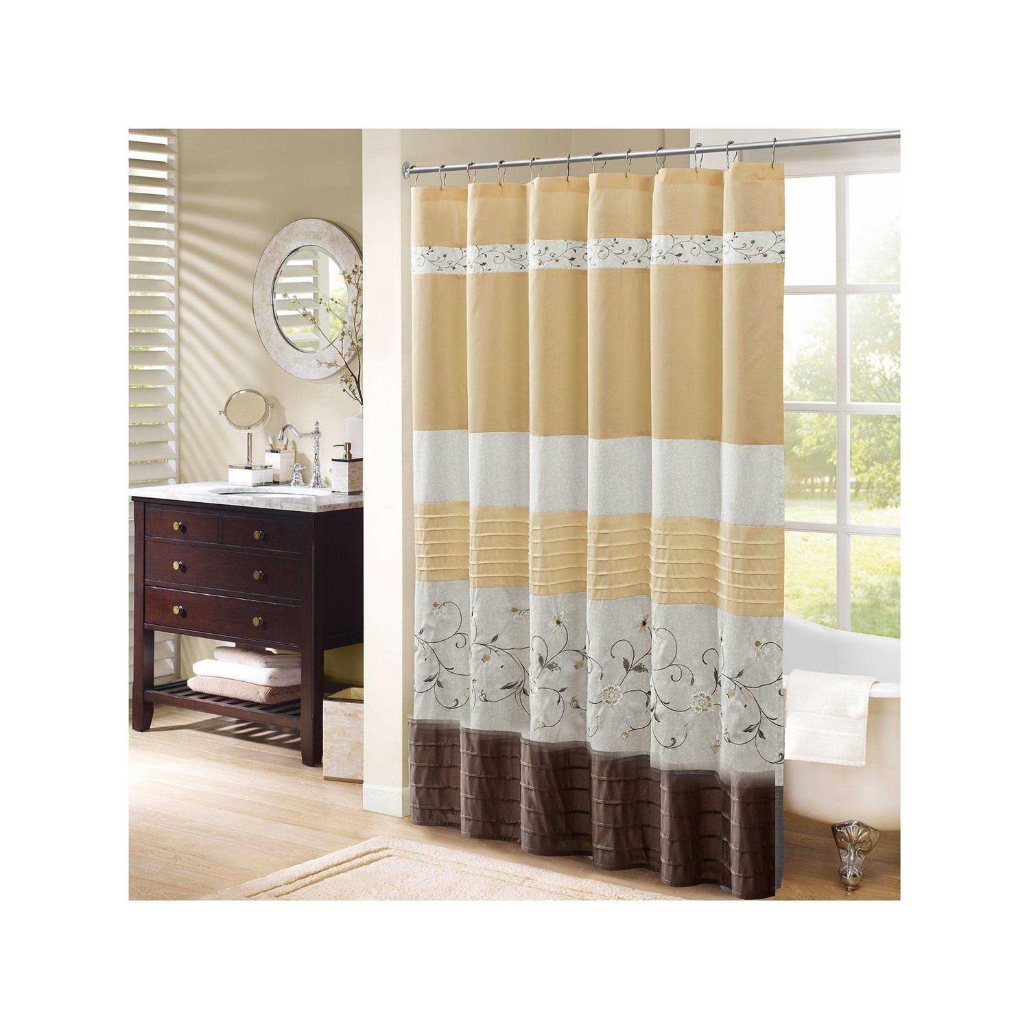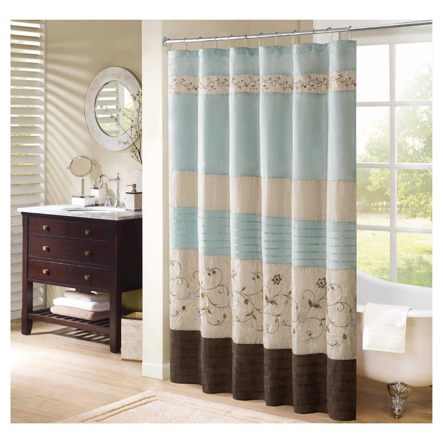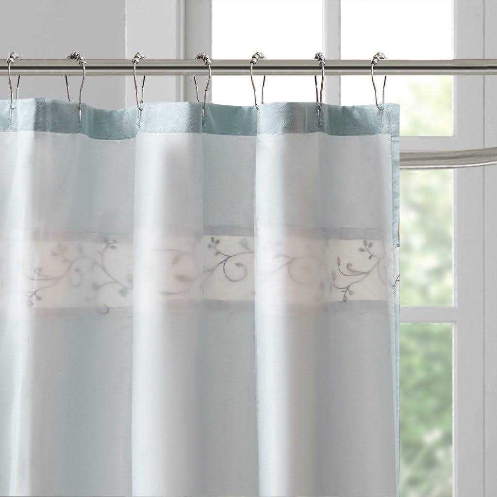 Madison Park Serene Faux Silk Embroidered Floral Shower Curtain