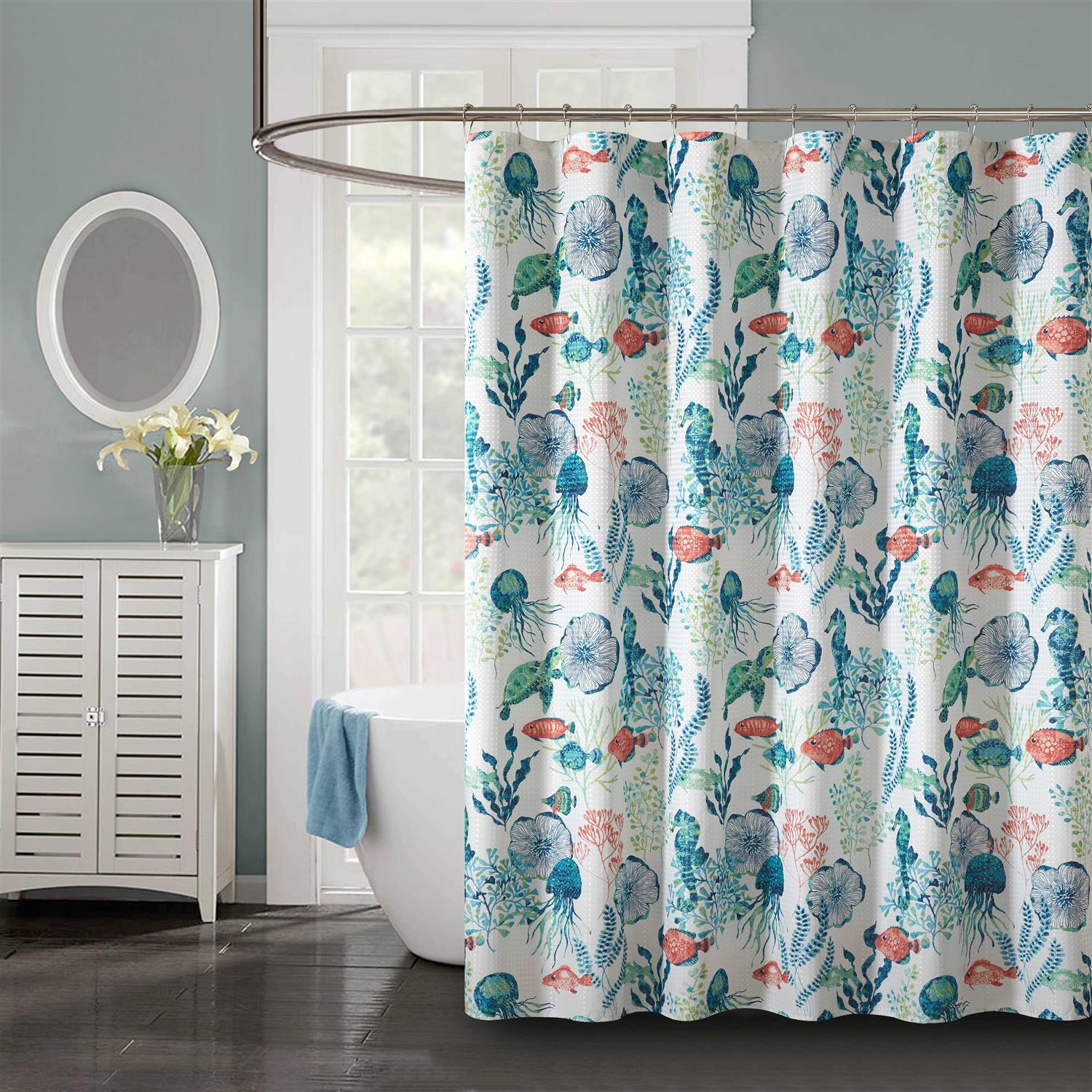 Mainstays Polyester Canvas Coastal Waffle Shower Curtain