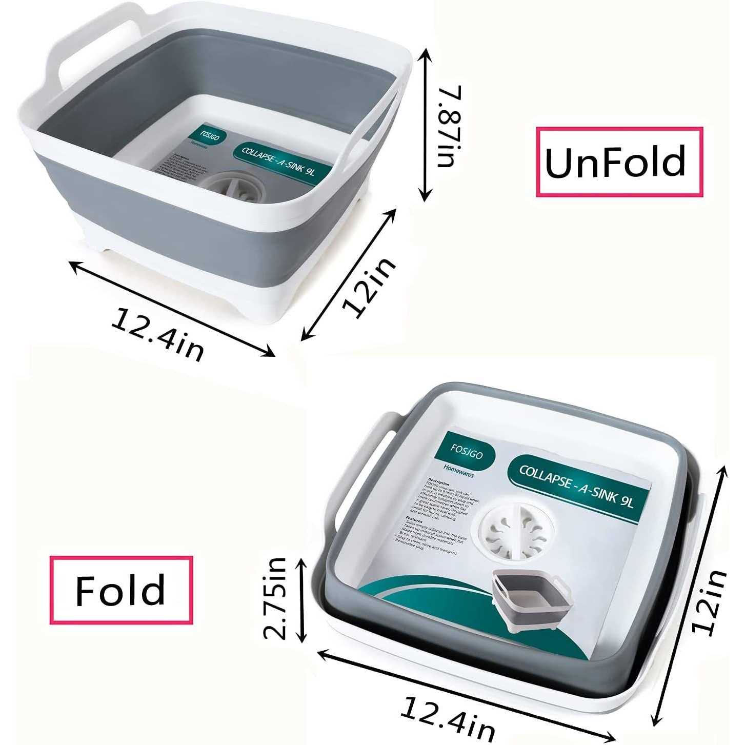 Fosjgo Dish Basin Collapsible with Drain Plug Carry Handles for 9 L Capacity