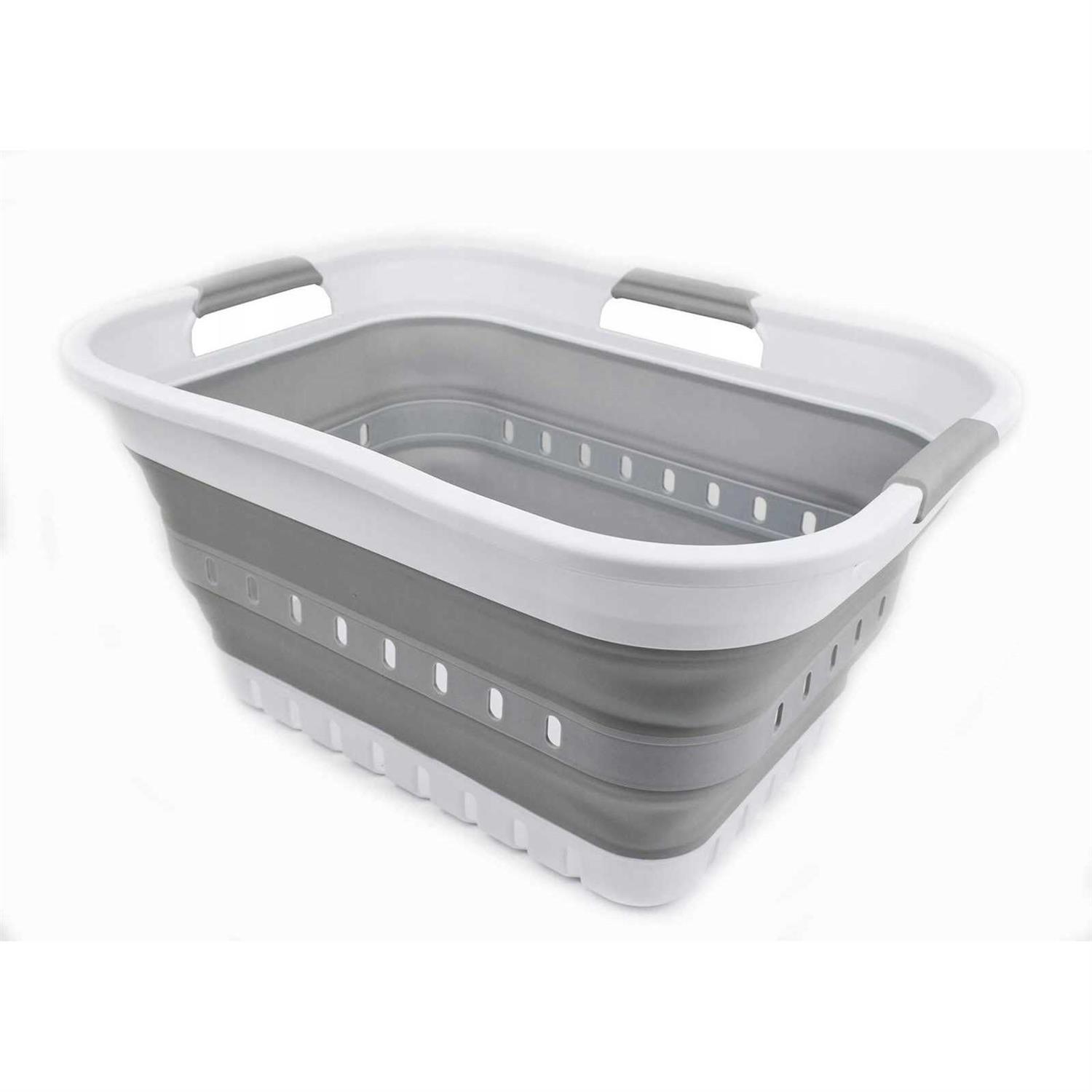 Sammart 30l Collapsible 3 Handled Plastic Laundry Basket Foldable Pop Up Storage Container/Organizer