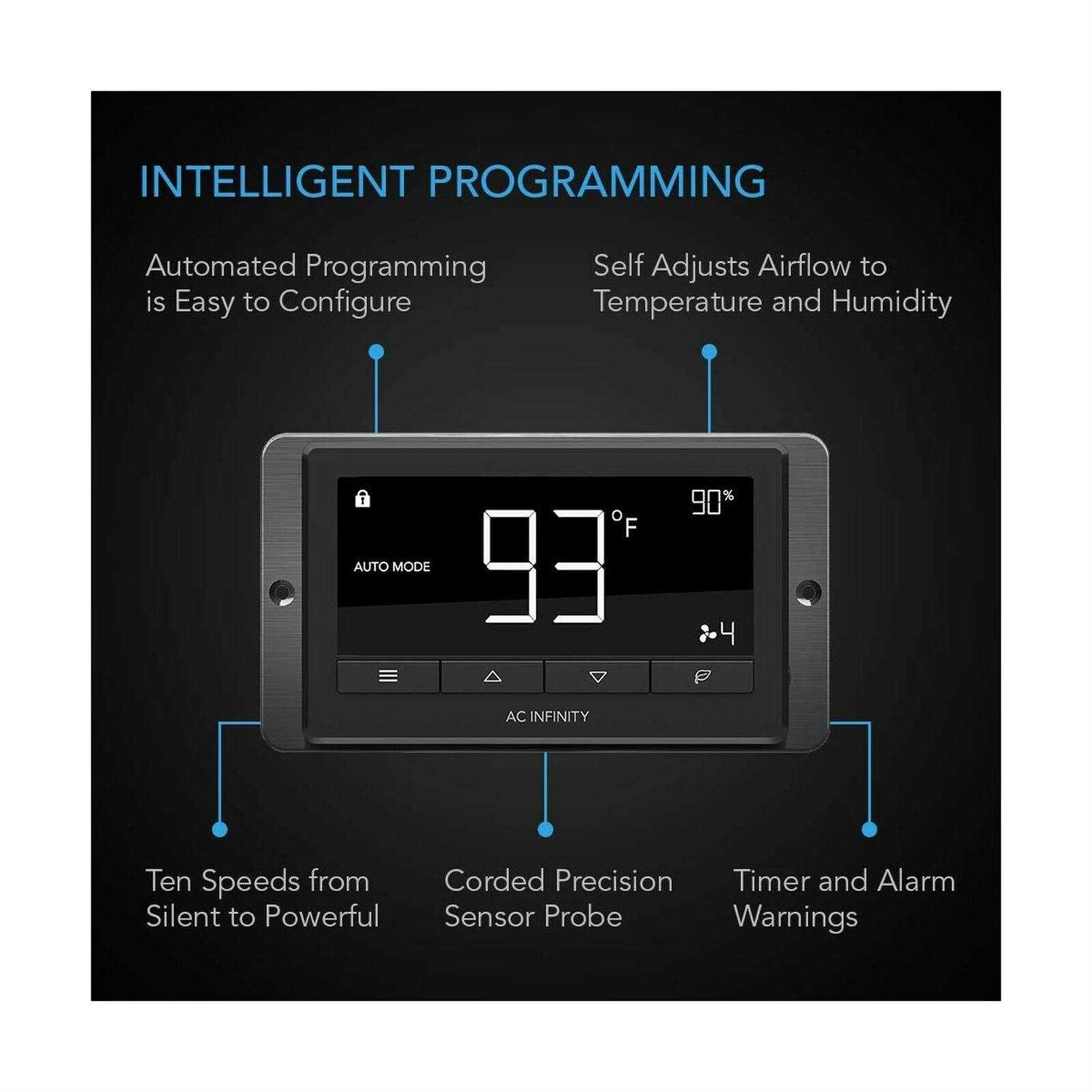 • Dynamic temperature and humidity programming, with timer, grow cycles, scheduling, minimum speed.