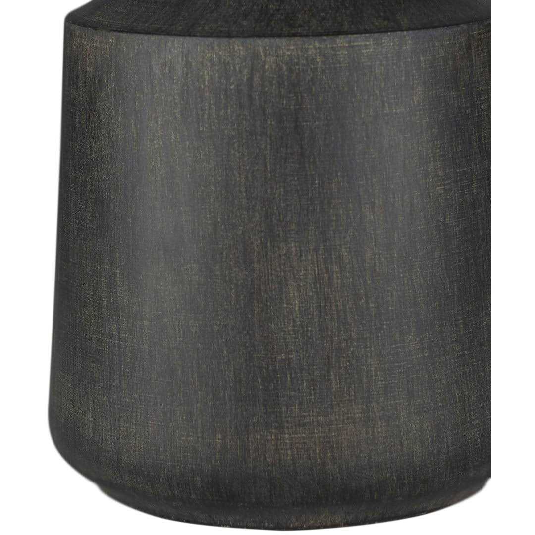 Bring some Scandi-inspired vibes to your side table with this table lamp. The bottle-shaped base is crafted from ceramic with a wood neck in a natural finish. Topping the lamp is a white fabric drum shade that diffuses the light from a 60W bulb not included throughout your space. The on/ off switch is located on the cord for easy access. Pro tip: When sitting on a sofa the bottom of the shade should line up with your eye level so that you’re not blinded by the light.