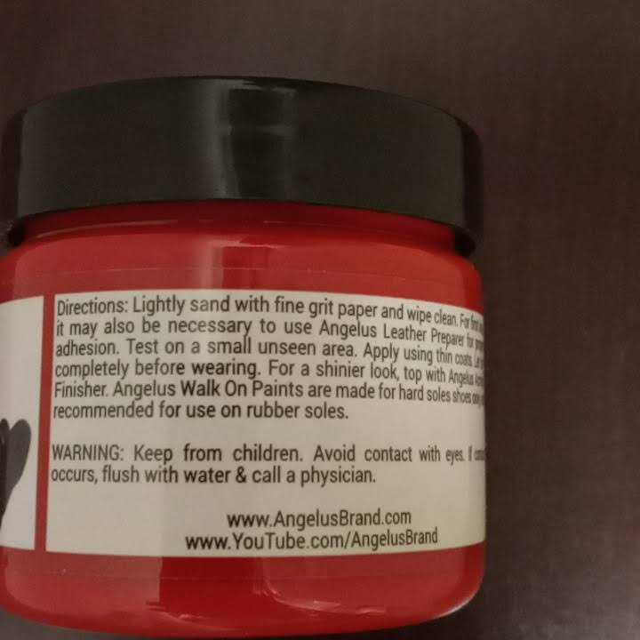 Angelus Walk on Red is a stain-type paint with an additional hardening agent specifically formulated to refinish the bottom of hard-soled shoes. This paint is made to withstand being walked on and is not suitable for anywhere a flexible paint is needed. Perfect for cleaning up and restoring dress shoes with red bottoms, or customizing dress shoes to have red bottoms in trend with current fashion. 75″ L x 1. 75″ W x 2″ H.