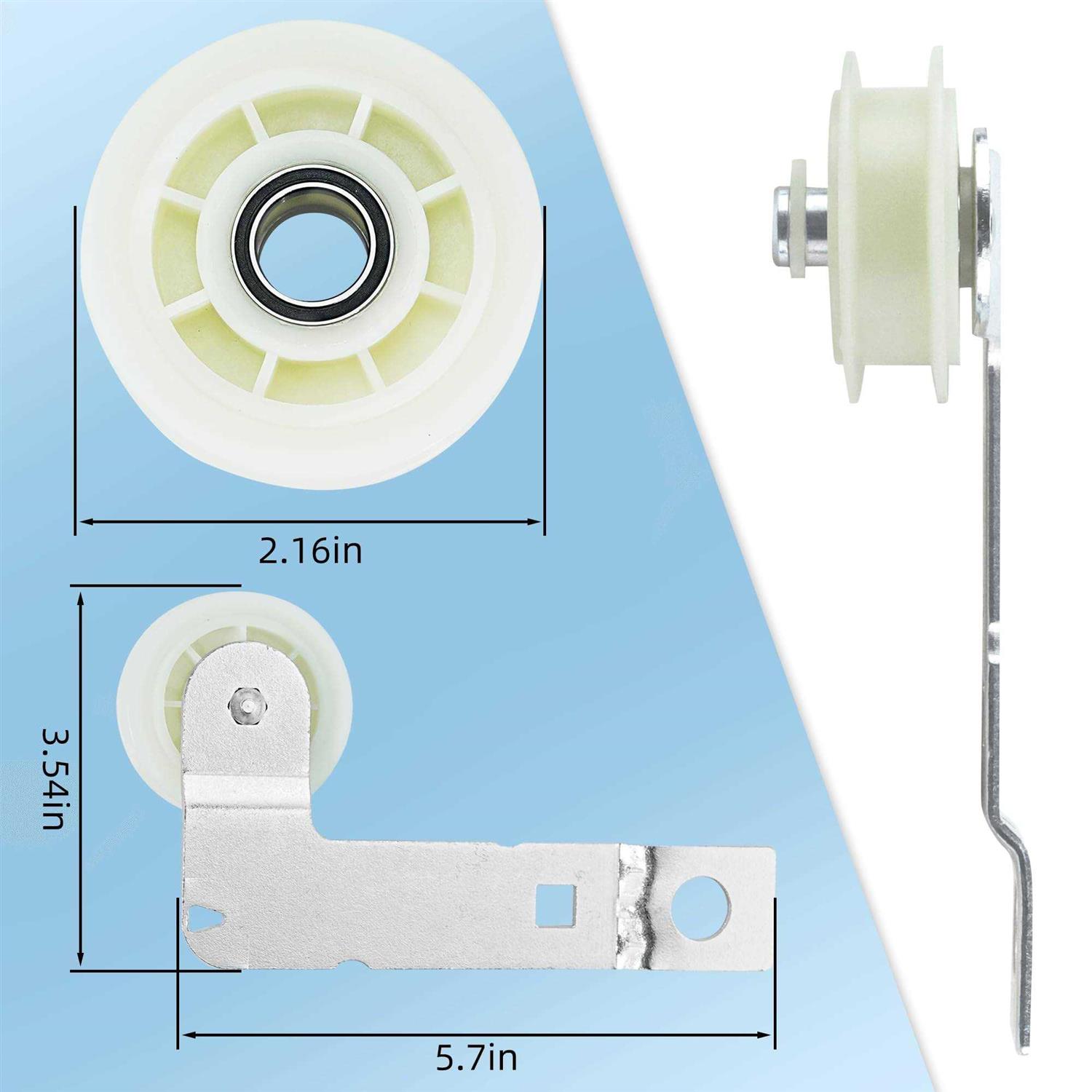 Appliancemate 661570 & 279640 & W10837240 Dryer Idler Pulley(Upgraded Ball Bearings) with Bracket and Dryer Idler Pulley(Upgraded Ball Bearings) and