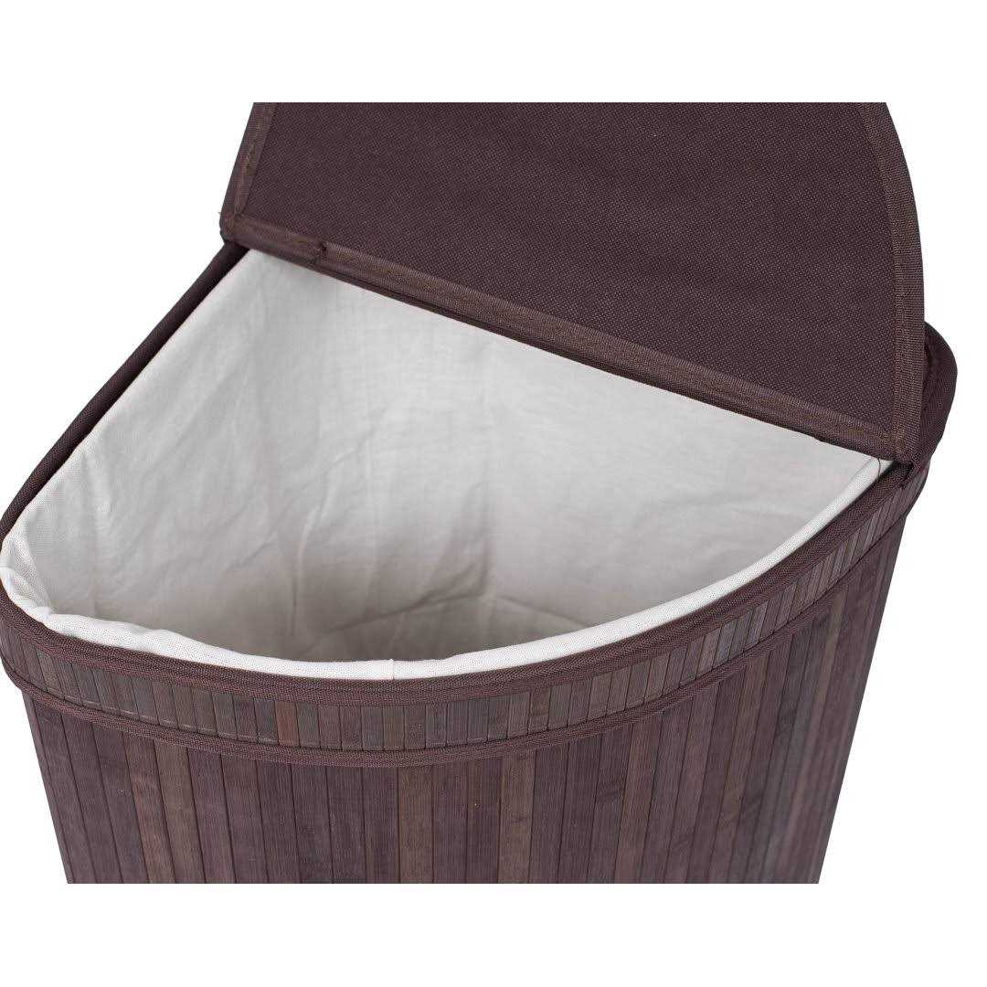 Bay Isle Home The corner laundry hamper with lid and cloth liner is a great addition to any bedroom, laundry room, or bathroom. It is specifically designed to fit in a typical 90-degree room corner, maximizing space while staying out of the way. The hamper features a lid keeping dirty clothes out of sight while also concealing any smells. The cloth liner is washable, making it great for many uses (cold water, gentle cycle air dry or low tumble dry). It is constructed from natural bamboo, and the hamper offers you a durable yet lightweight solution to organizing your dirty clothes. The hamper can fit one standard sized loads of laundry. Our laundry hamper will help you keep your home organized without being a big eyesore. It helps keep dirty clothes off the floor by offering a single location for your dirty clothes.