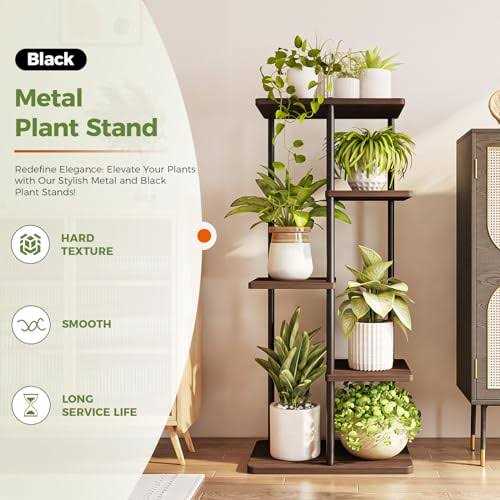 Bamworld Plant Stand Indoor Metal Plant Shelf 5 Tier Black Plant Stands for Multiple Plants Small Plants Pots Corner Flower Stand Pot Holder for