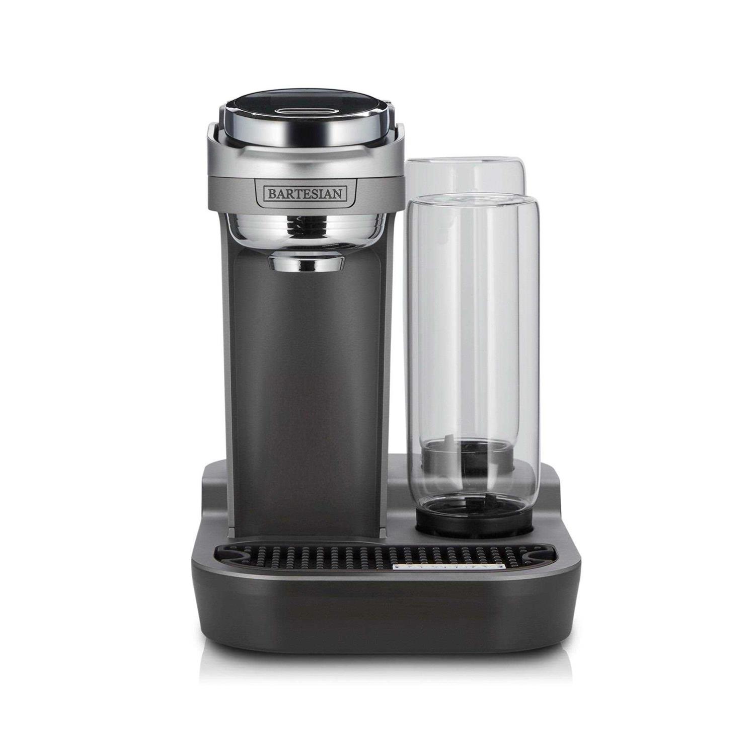 Bartesian Recreate the taste, experience and ambiance of premium bar cocktails with the Bartesian duet cocktail machine. The beauty of Bartesian duet is that it’s fast and easy to use, so anyone can craft a perfect cocktail in seconds. Simply set your two spirits of choice and insert a capsule. Once the capsule is inserted, the cocktail is immediately identified via barcode and the user-friendly lcd display suggests the proper glassware. Place the glass on the bar top and select the preferred strength from mocktail to strong — the intuitive rotary dial makes navigation easy. In seconds, Bartesian duet draws the spirit from the appropriate bottle and crafts a fresh, delicious cocktail. From the stylish touchpoints and effortless capsule latch to the LED light that highlights each cocktail as it’s crafted, Bartesian duet makes every drink an event. To minimize cleaning and ensure that every drink tastes fresh, it automatically runs a rinse cycle to prevent the previous cocktail’s ingredients from mixing with the next one. After you’ve enjoyed your cocktail, just open the top and the spring-assisted capsule holder will pop the capsule up for quick removal. Includes 2 premium glass bottles to hold the spirits of your choice.