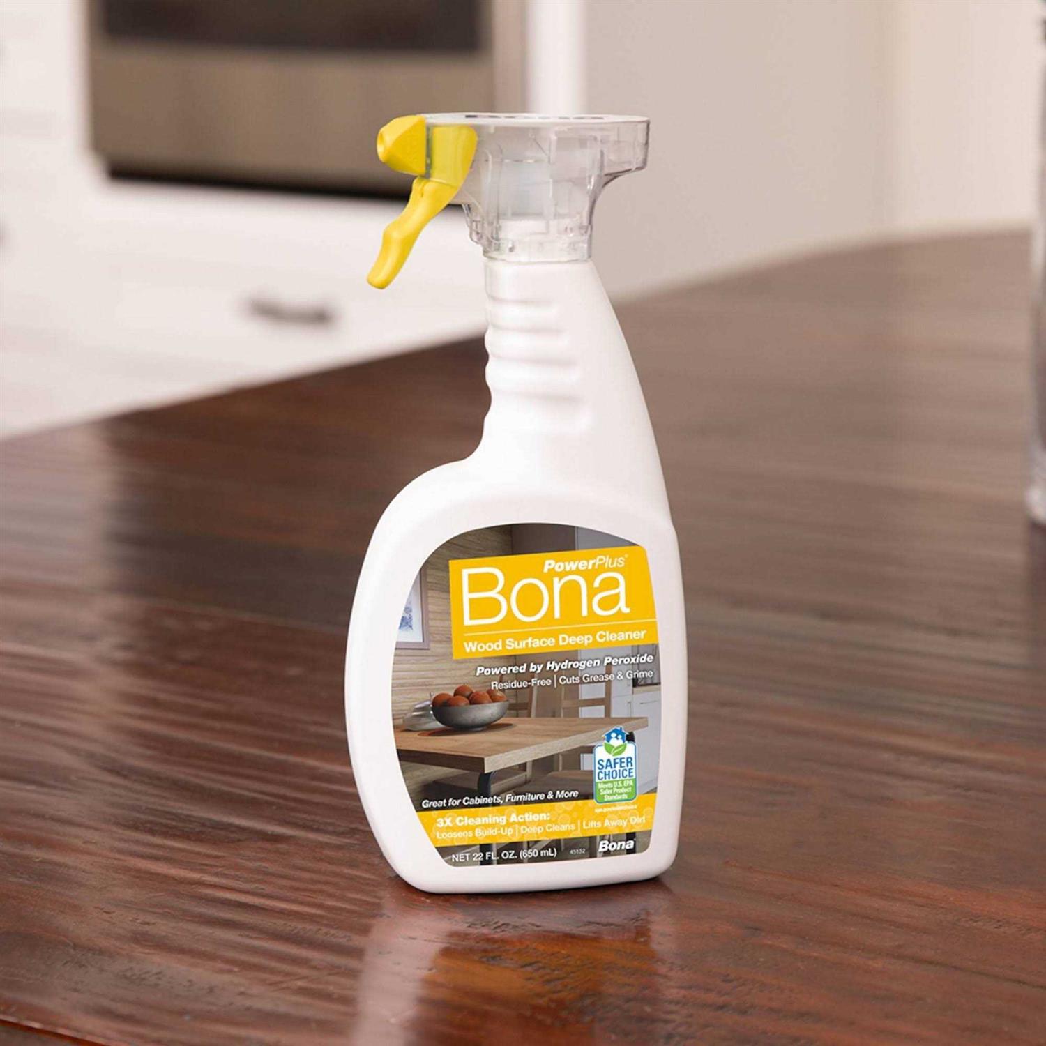 For over 100 years, Bona has been trusted and rmended by flooring professionals to take care of your wood floors. You can now trust in Bona’s experience and expertise to care for all the wood surfaces in your home. Deep clean wood cabinets, furniture, and more with Bona PowerPlus Wood Surface Deep Cleaner. Power through stuck-on grease and grime with 3X the cleaning action. Powered by hydrogen peroxide, this formula releases thousands of micro-bubbles to loosen and remove heavy build-up providing a deep clean without the extra effort. Love your home with waterbased solutions from Bona that are safe for you and our planet.For best results, spray and wipe clean with a microfiber cleaning cloth. Rinse and wring cloth often to avoid streaking.