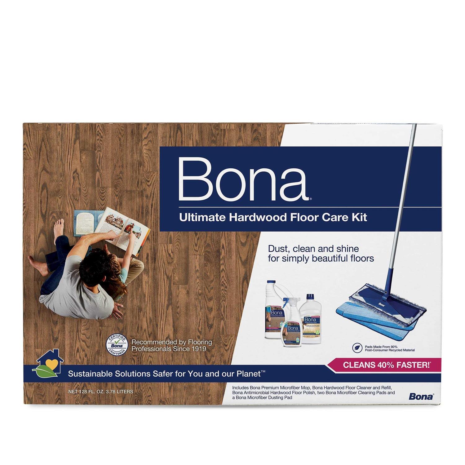 Floor Cleaners by Bona. Details:Flooring contractors agree, when looking for the best to care for hardwood floors, trust the Bona floor care system of products. The Bona Ultimate Hardwood Floor Care Kit includes everything you need to dust, clean and polish your hardwood floors.