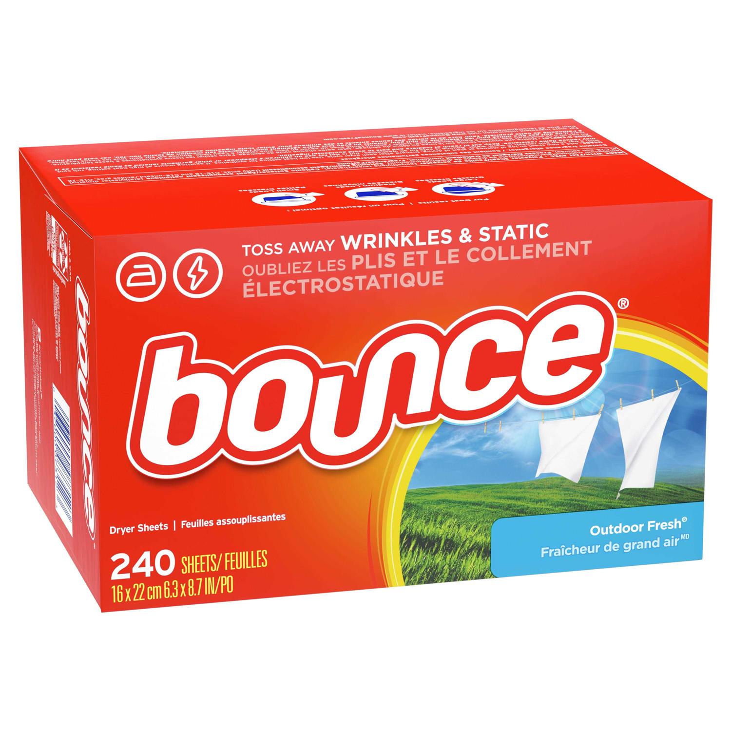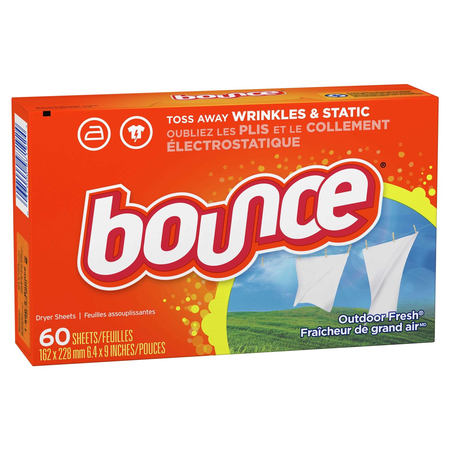 With Bounce Outdoor Fresh Dryer Sheets, static cling doesn’t have to be a thing. Bounce Dryer Sheets help static build up that occurs in the dryer so you can look and feel your best. America’s #1 dryer sheet brand is tough on wrinkles, too. Toss a sheet in the dryer to keep clothes looking their best and wrinkles so your clothes will be ready to wear right away, making you look and feel confident. Bounce Outdoor Fresh Dryer Sheets don’t stop there. From the moment you pull your laundry out of the dryer, Bounce Dryer Sheets give your clothes a fresh and lasting scent and a noticeably soft feel. Way less static, fewer wrinkles, softer fabrics, and an outdoor fresh scent is that easy. Toss in two Bounce Dryer Sheets for your average loads to iron less, fight more static, and add more softness and freshness. One will do for small loads, and if you’re catching up on laundry and have an extra large load, toss in three! You can also use Bounce Dryer Sheets around the house. Tuck them in drawers or closets, put them in gym bags and suitcases, or stash them at the bottom of your trashcan to bring that Bounce Outdoor Fresh scent you know and love out of the dryer and into your home. Fights static cling. keeps you virtually static-free. America’s #1 dryer sheet brand. for use in all types of dryers (he & regular). wrinkles. look and feel confident. Outdoor fresh scent. enjoy the freshness you know and love. Feels extra soft. get the comfort you deserve.