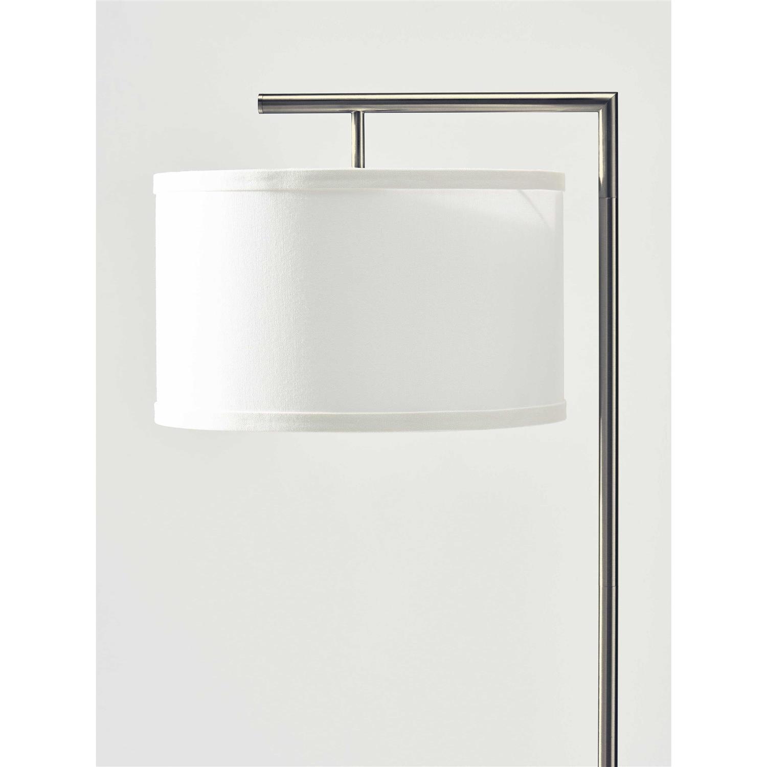 Add a little light to your life with this versatile floor lamp. Modern yet classic, this Brightech Montage Modern Floor Lamp will soon be in your favorite place for cozying up. The Montage Modern design fits in decor styles from mid-century modern to traditional-contemporary. The satin finish pairs with the warm tone of the lamp’s hanging drum shade to make you feel warm and cozy. The fabric shade directs light downwards, making a great reading floor lamp. This Brightech lamp includes a LED bulb rated to last 20,000 hours, giving this lamp a 20-year life with a normal use of about 3 hours a day. You can switch the lightbulb out with a smart bulb that has dimming capabilities. The weighted base prevents tipping and the convenient footswitch allows you to easily tap the lamp on or off. If you have a smart outlet, this smart floor lamp works with Alexa, Google Home Assistant, or Apple HomeKit. The standing lamp’s total height is 60 inches while the drum shade measures 14.75 inches wide and 7 inches tall. Sit down, relax, and read a book in your favorite chair under the soft glow of the Montage Modern Floor Lamp by Brightech.