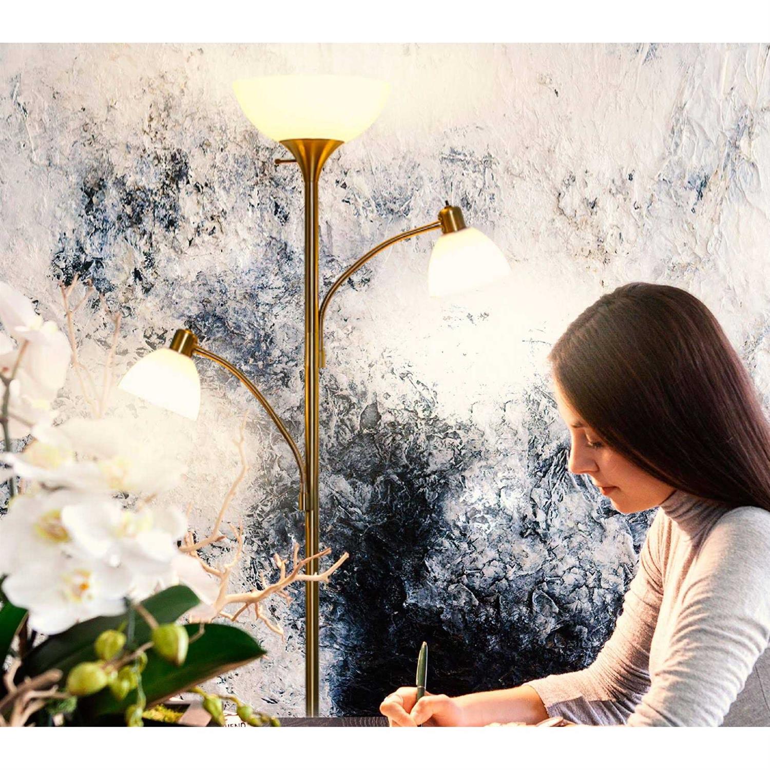 - High Brightness Torchiere Floor Lamp \w 2 Reading Lights for Living Rooms, Bedrooms