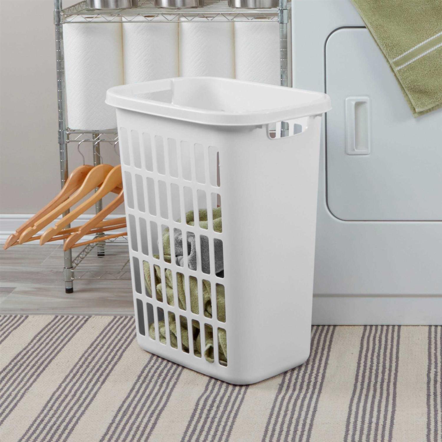 The Rectangular Open Hamper features a slim profile and a generous 1.8 bushel capacity, making it an ideal solution for large families looking to save some space. A symmetric rectangular hole pattern throughout the hamper provides ample ventilation for dirty laundry, while a wide opening allows for quick and easy access when loading and unloading clothes. This hamper features two through handles integrated into the reinforced rim that offer a comfortable grip surface for lifting and carrying. Its sleek, rectangular profile takes up minimal floor space, making it ideal for apartments, dorm rooms, or for transporting clothes between locations. The overall assembled dimensions of this item are . Dimensions Overall 20 Inches L 23.25 Inches H x 13.12 Inches W Used For MultiPurpose Capacity Volume 59.7 Liter Number of Handles 0 Material Plastic
