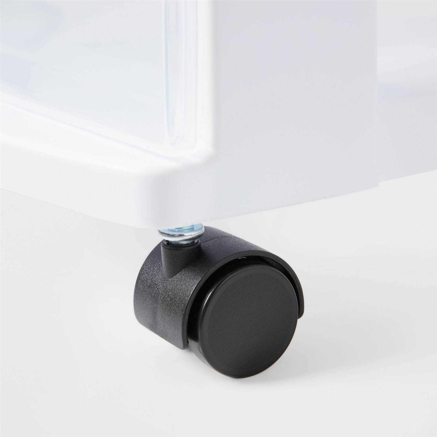 The 3-Drawer Wide Cart from Brightroom makes a perfect choice to keep your home organized in simple yet modern style. Boasting a plastic construction, this medium cart comes with wide, frosted finish drawers for an easy see-through design. This white cart is designed with multiple drawers to provide ample space for your towels, cleaning essentials and more, while the caster wheels make it easy to move around the space. Brightroom : See your space in a new light.