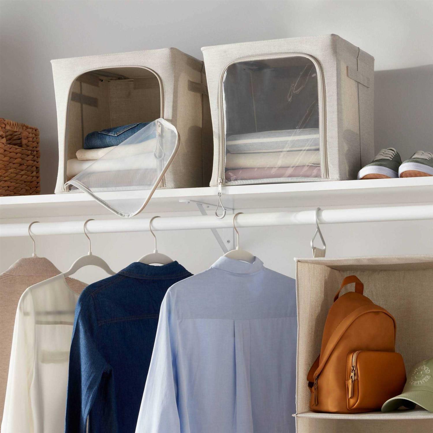 The gray storage cubes offer a place for storing clothing and other necessities when you run out of drawer space. The attached handles make it easy to move the organizers on and off closet shelves and the zippered front and top give you easy access, while the clear window lets you easily see the contents stored inside. Best of all, they fold flat and can be stacked when not in use. Brightroom : See your space in a new light.