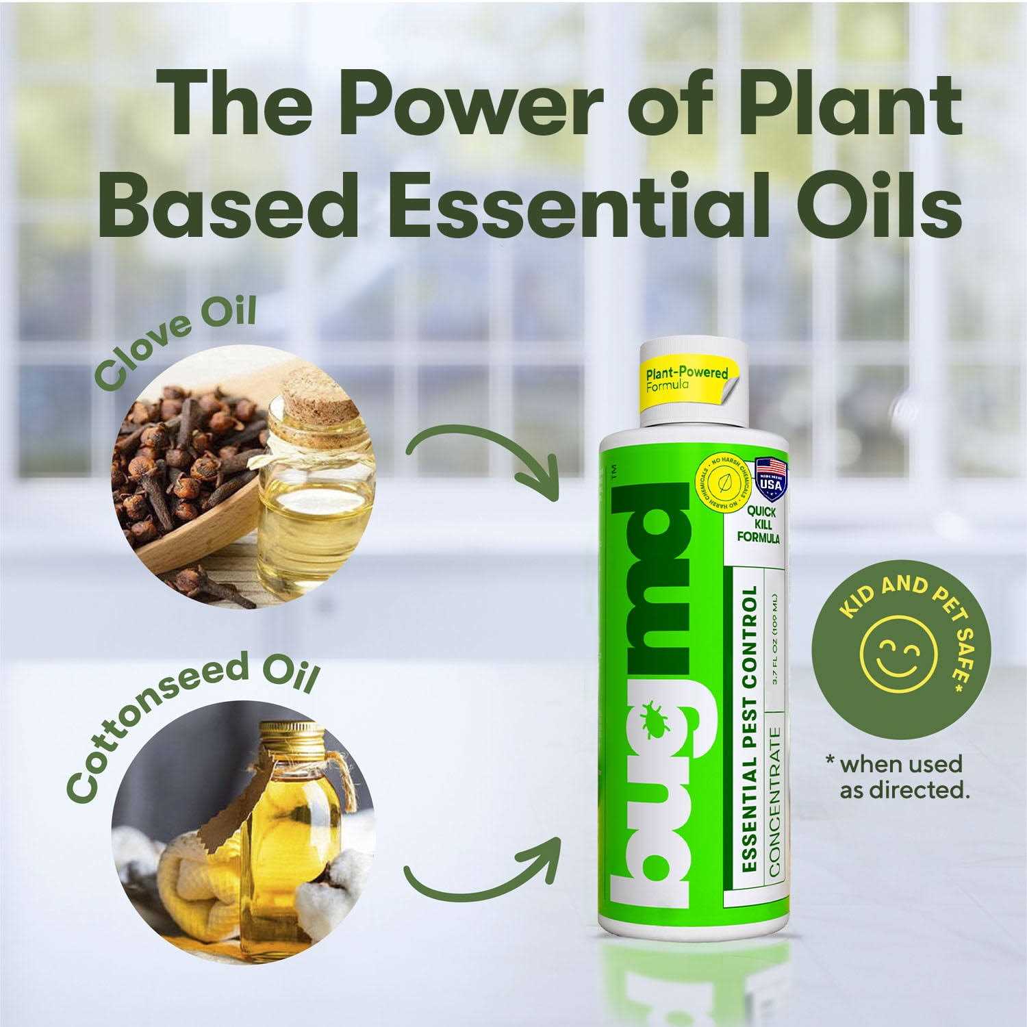 Bugmd – Pest Control Essential Oil Concentrate 3.7 oz – Plant Powered Bug Spray, Kills Bugs Spiders Fleas Ticks Roaches, Ant Spray Indoor, Ant Killer