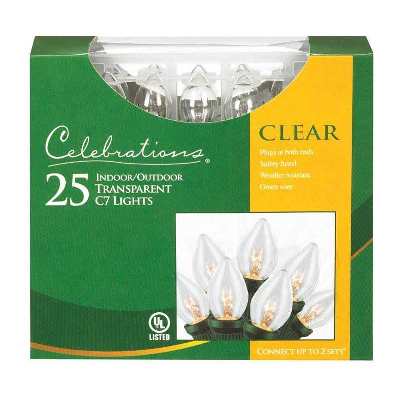 Celebrations Indoor/Outdoor C7 Lights, Clear, 25′
