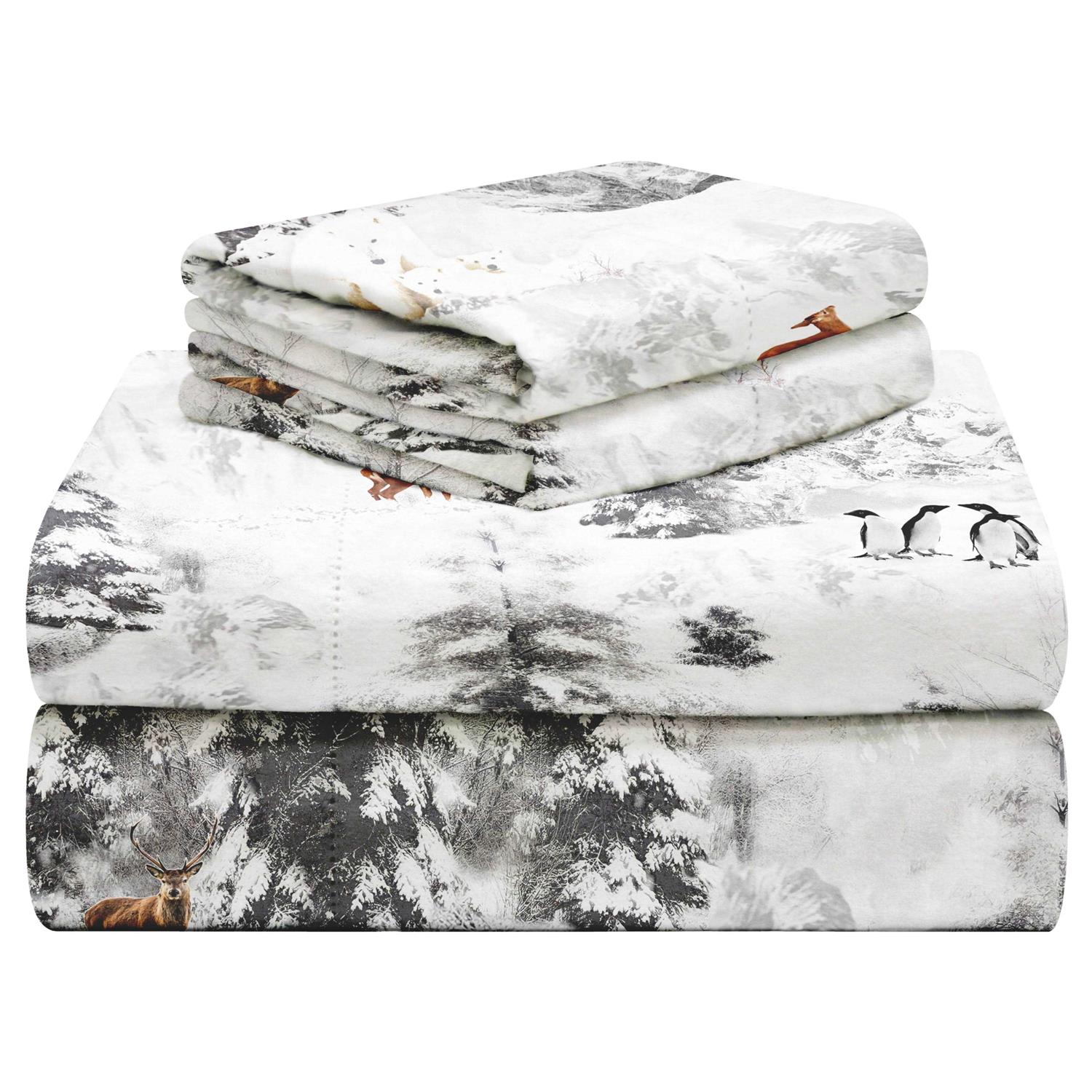 Celeste Home 190 GSM Winterland Cotton Flannel Sheet Set, Multi, Full