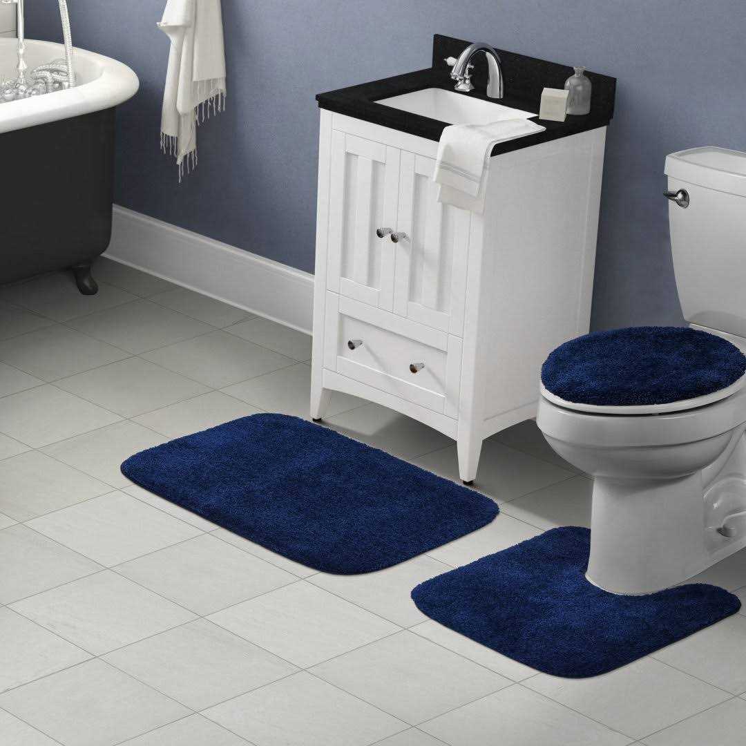 Protecting your feet from cold floors while also providing the perfect way to round out your bathroom ensemble this bath rug set C which includes a bath mat a toilet cover and a contour rug that fits any standard toilet C is always stylish addition. Made in the USA from nylon it features a 0.4″ pile height that’s perfect for high-traffic areas and a rubber backing designed to eliminate slipping on slick floors. Plus each piece is resistant to mildew making it the ideal pick for your bathroom arrangement.