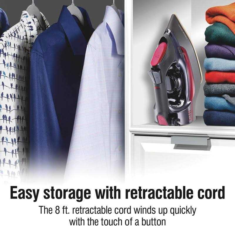 CHI Steam Iron with Retractable Cord Titanium Infused Ceramic Soleplate & Over 400 Steam Holes