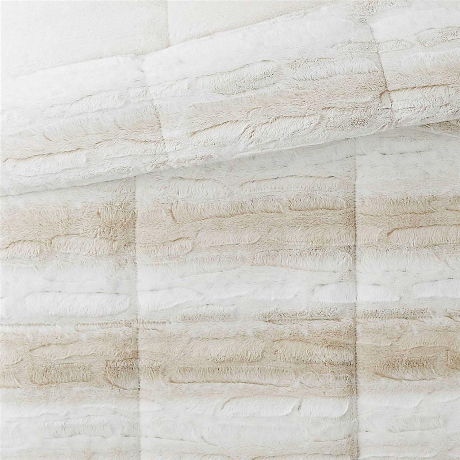 Face is 100% Carved Pv Fur Reversing to Velvet. Filled With 100% Polyester. Includes one full/queen comforter (90×90 inches) and two standard shams (20×26 inches) Face is 100% carved PV fur reversing to velvet. Filled with 100% polyester for a lightweight yet warm comforter. A faux fur face and back winter weight comforter. The face of the comforter uses a 100% polyester knit in a snow leopard pattern with cut out trimming for extra texture. It reverses to a 100% polyester velvet. The 100% polyester filling provides an extra layer of warmth for long winter nights. Digitally printed sets allows for saturated colors that combine in endless beautiful hues Fashion bedding and home decor from the ever fabulous Christian Siriano New York home collection.