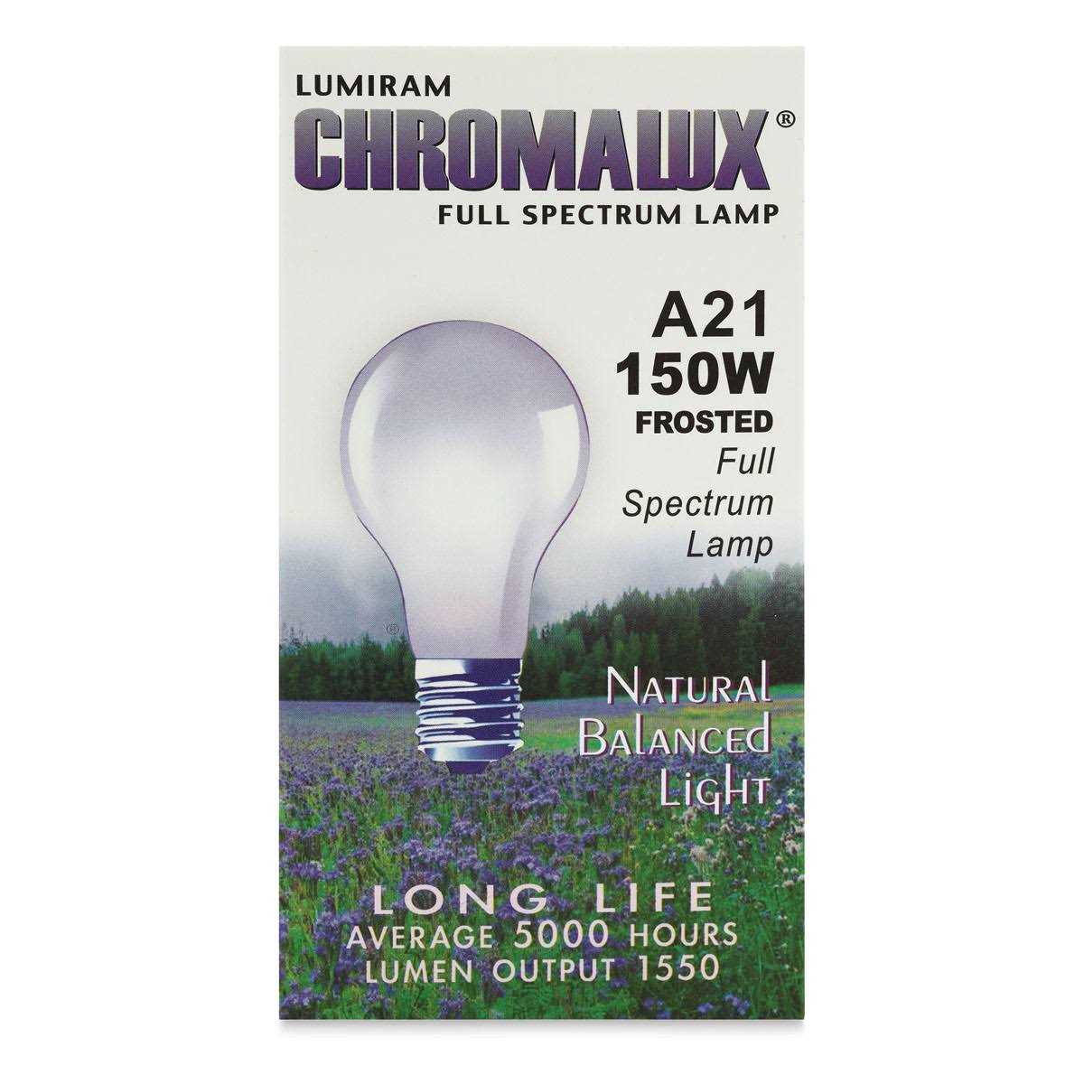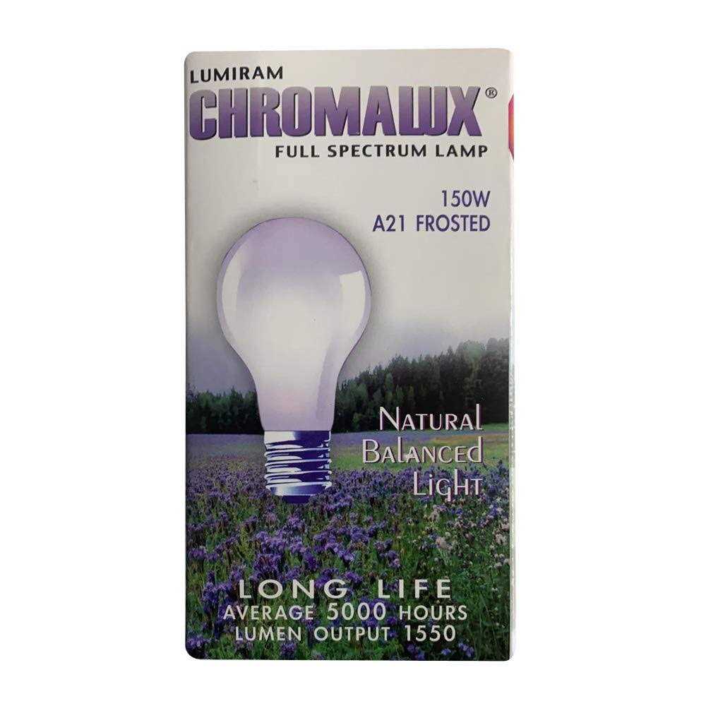 Chromalux bulbs mimics natural light Full-spectrum, 150 watt bulbs are 30% more efficient Reduces eye stress and promotes a relaxing environment Chromalux Full Spectrum Lights Bulbs take indoor lighting to the next level. The closest indoor light to natural sunlight, these bulbs contain chromatic balance and have color-discriminating qualities. This creates visual comfort, which helps reduce eye stress. Chromalux Full Spectrum Light Bulbs create a pleasing and relaxing environment that helps you concentrate longer with increased comfort and visual acuity. Long-life, averaging 5,000 hours.