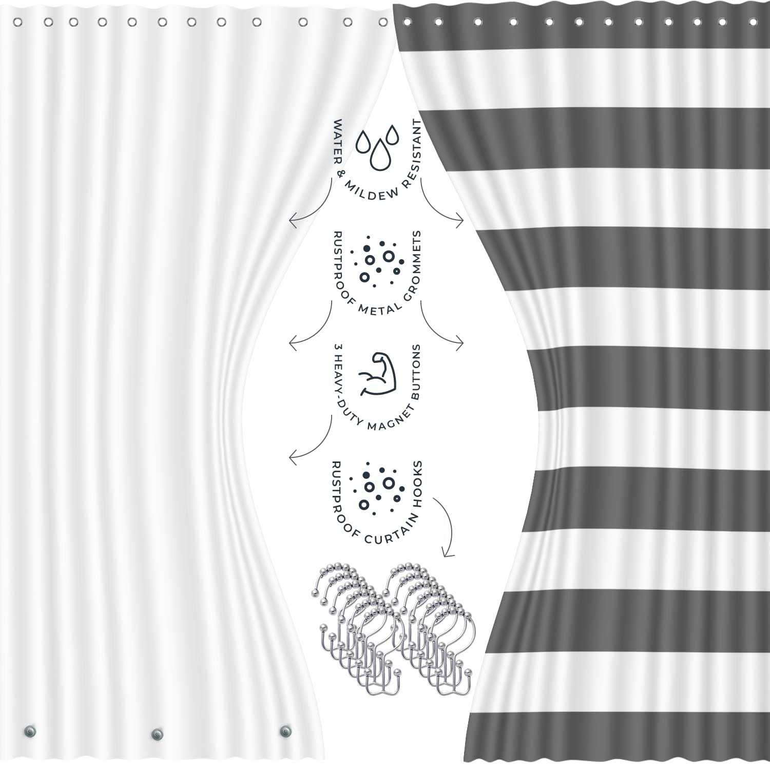 Clara Clark 12 Piece Complete Bathroom Accessories Kit with Shower Curtain Set and Bath Rug Set – Gray