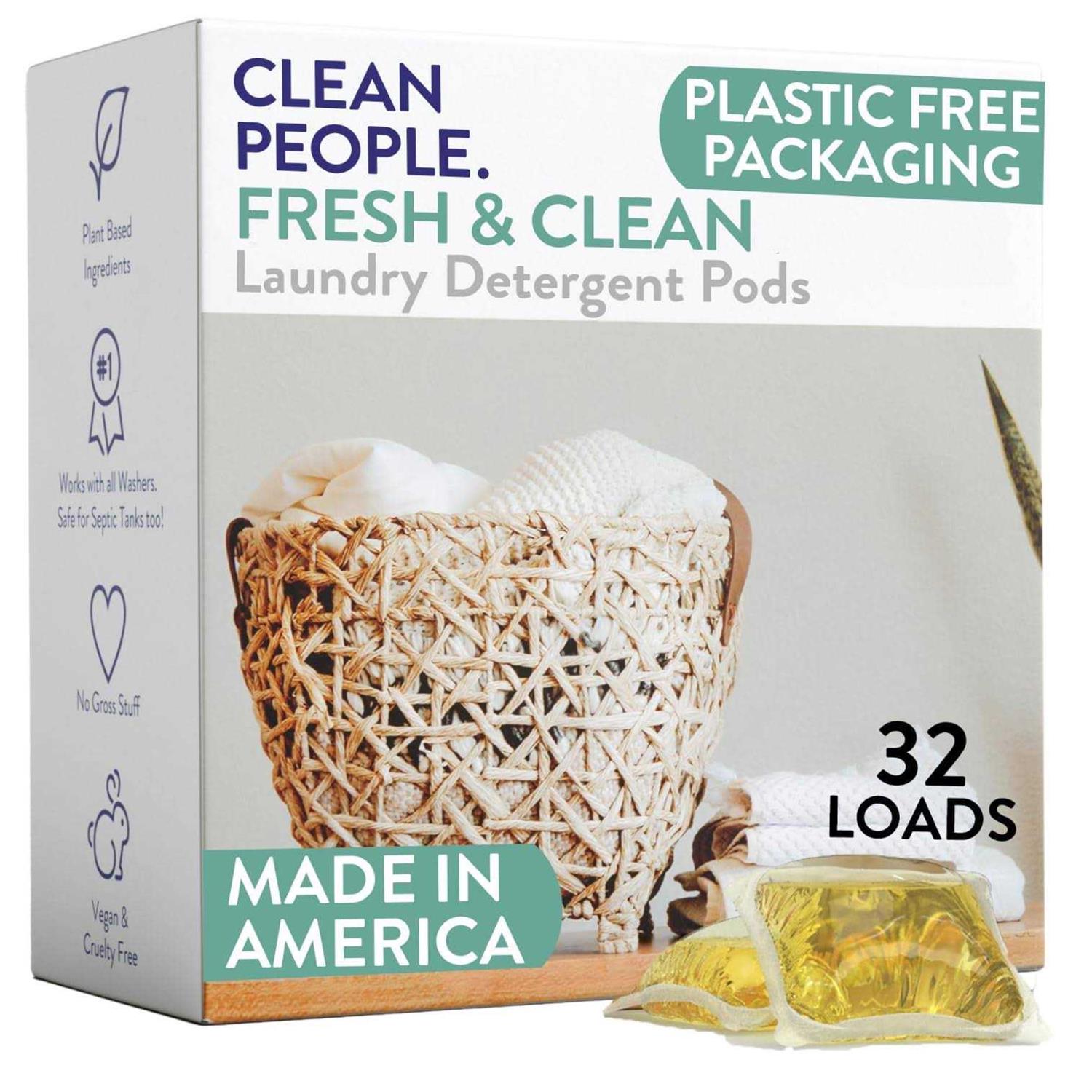 Clean People Ultra Concentrated Laundry Detergent Pods – Plastic Free, Natural Plant-Based Ingredients, Recyclable Packaging, Stain Fighting, Works