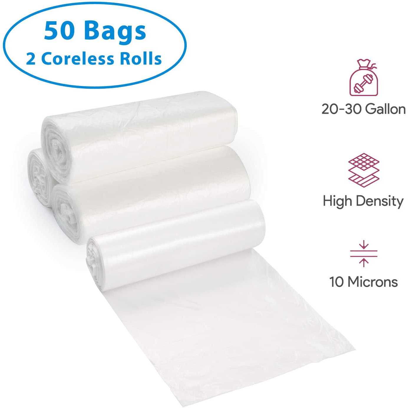 20-30 Gallon Clear Trash Bags, 50 Count Large Garbage Can Liners for Kitchen, Office, Home, Hospital and Industrial Wastebaskets