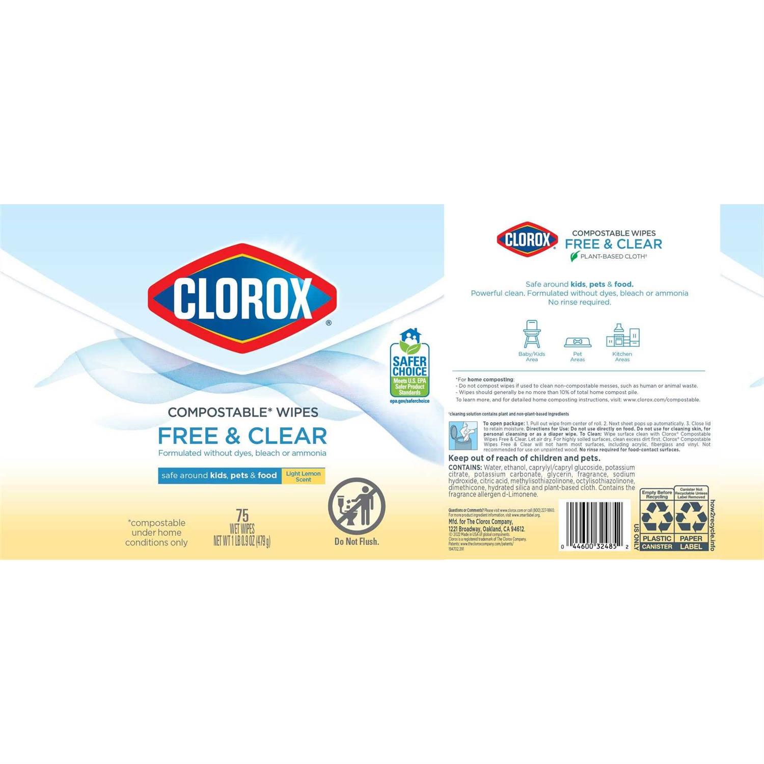 - Personalize your bathroom with the selection of this Clorox Free and Clear Scent Compostable AllPurpose Cleaner Wipes durability.