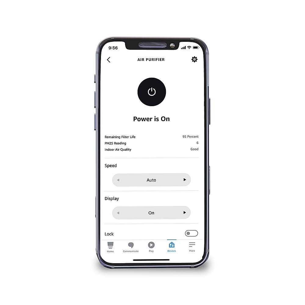 The Clorox smart large room air purifier connects to your Alexa smart speaker for hands-free voice control and to the Alexa app to let you control it from anywhere. It captures 99.97% of allergens and particulates and 99.9% of viruses and bacteria so you can breathe easier. The 3 stage 360 degree filter delivers 360 degree air purification by capturing particulates in 3 filters- a pre-filter, true high efficiency particulate air (Hepa) filter and active carbon filter. You’ll always know your current air quality because the PM2.5 digital display and color-coded light provide real-time feedback. To keep your air clean around the clock, select the auto mode and walk away – it automatically adjusts to the ideal fan speed in response to changes in your air quality. Energy star certified. Includes 1 Clorox filter that lasts 6-12 months.