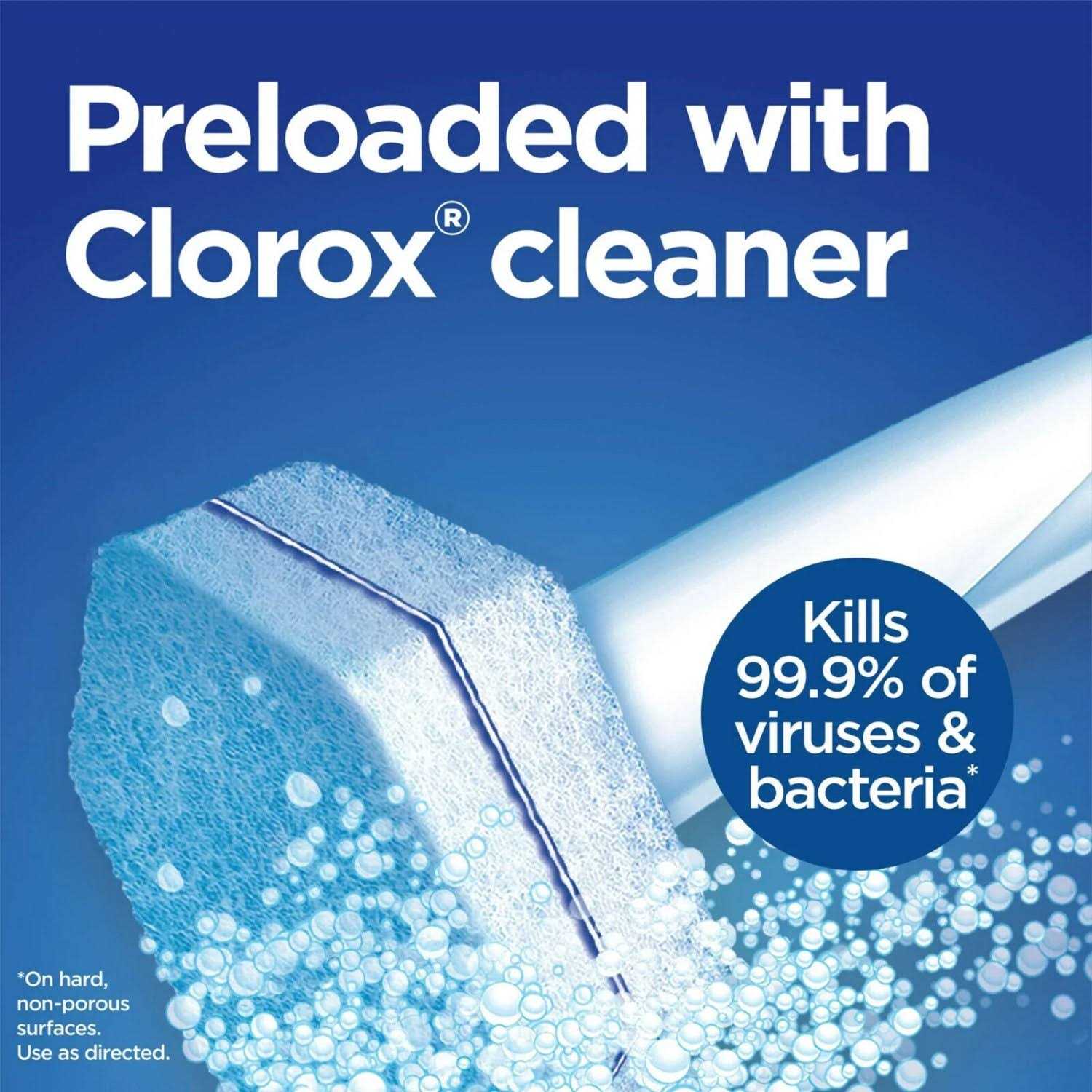 Clorox ToiletWand and Disinfecting Refill pack has disposable cleaning heads to clean everyday tough stains, disinfect and eliminate odors to keep your toilet bowl sparkling clean and fresh. Each disposable head contains preloaded foaming Clorox cleaner with real scrubbing power to clean and disinfect toilets while releasing a fresh Rainforest Rush scent. The sponge like head is hexagon shaped to allow for better reach under the rim. Just click the wand into a refill head, swish around the bowl to release the cleaner, scrub and toss the head away into the trash when done. The convenient all in one system kills 99.9% of germs, disinfects and eliminates odors with ease. These disposable refill heads are designed to fit the Clorox ToiletWand Caddy. Make toilet cleaning an easy chore with the Clorox ToiletWand Disposable Toilet Cleaning System.