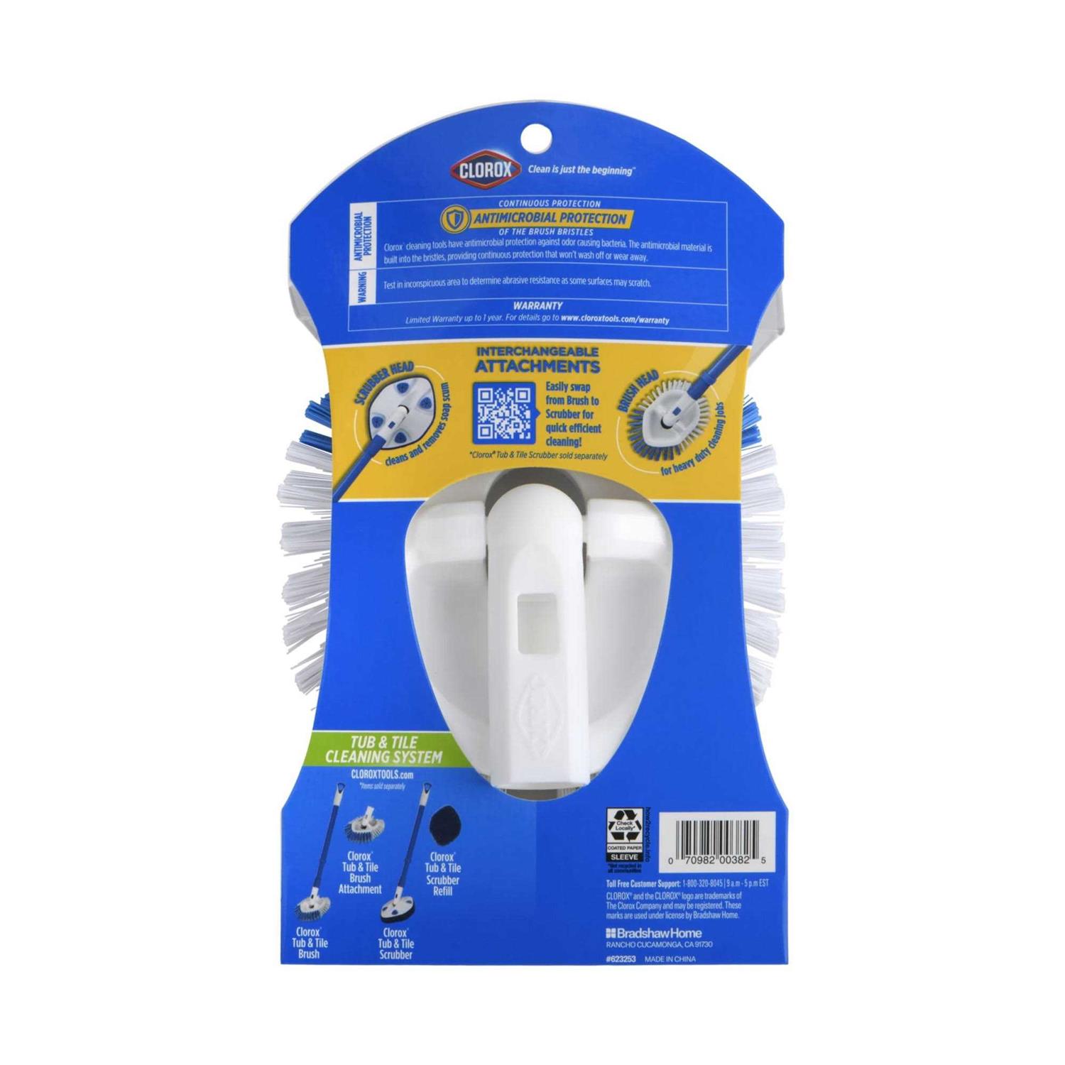 The Clorox Tub And Tile Brush Attachment is a replacement brush head for the Extendable Tub and Tile Brush and an interchangeable attachment that is compatible with the Extendable Tub and Tile Scrubber. Attachments are easy to remove and replace. Clorox cleaning tools have antimicrobial protection against odor causing bacteria. The antimicrobial material is built into the brush bristles providing continuous protection that won’t wash off or wear away.