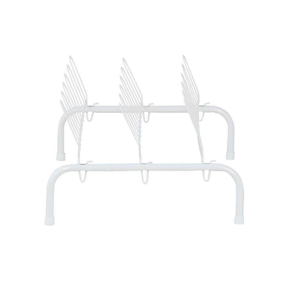 If your closet is cluttered with shoes this ClosetMaid Freestanding Shoe Rack will help you keep your shoes together and organized. With the easy to assemble compact shoe rack, you can add the rack to your closet, entryway, garage, and more. Made with heavy-duty epoxy-coated steel materials this sturdy, lightweight shoe stand is the perfect solution for storing flats, sneakers, slip-on, and more. With the ability to hold up to 9 pairs of shoes it makes for the perfect rack for the whole family. Do not worry about scratch the walls because the rack includes end caps to protect your space. ClosetMaid has made it easy to stay organized with a convenient shoe organization solution at your home. Unclutter your shoe collection with the ClosetMaid 1039 Freestanding Shoe Rack in White. Be able to organize your shoes while getting that needed space back in your closet.
