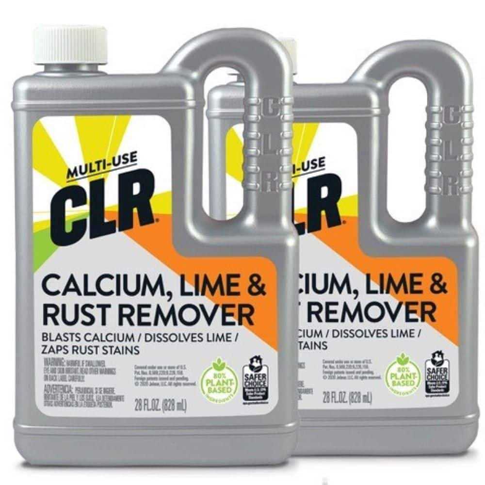 Need to tackle tough calcium and lime deposits as well as rust stains. CLR Calcium, Lime and Rust Remover is a powerful formula that quickly and easily dissolves and removes tough calcium and lime deposits as well as surface rust stains from bathtubs, toilet bowls, sinks, glass, chrome, fiberglass, stainless steel, most coffee makers, humidifiers, dishwashers, washing machines and shower heads. The formula also is perfect for use on RVs and boats. CLR Calcium, Lime and Rust Remover is part of the EPAs Safer Choice Program, recognizing the product as a safer alternative to chemicals. CLR is also Certified Bio Based. The fast-acting, powerful CLR formula is septic-safe and contains no phosphates. Always spot test in an inconspicuous area before beginning to clean.