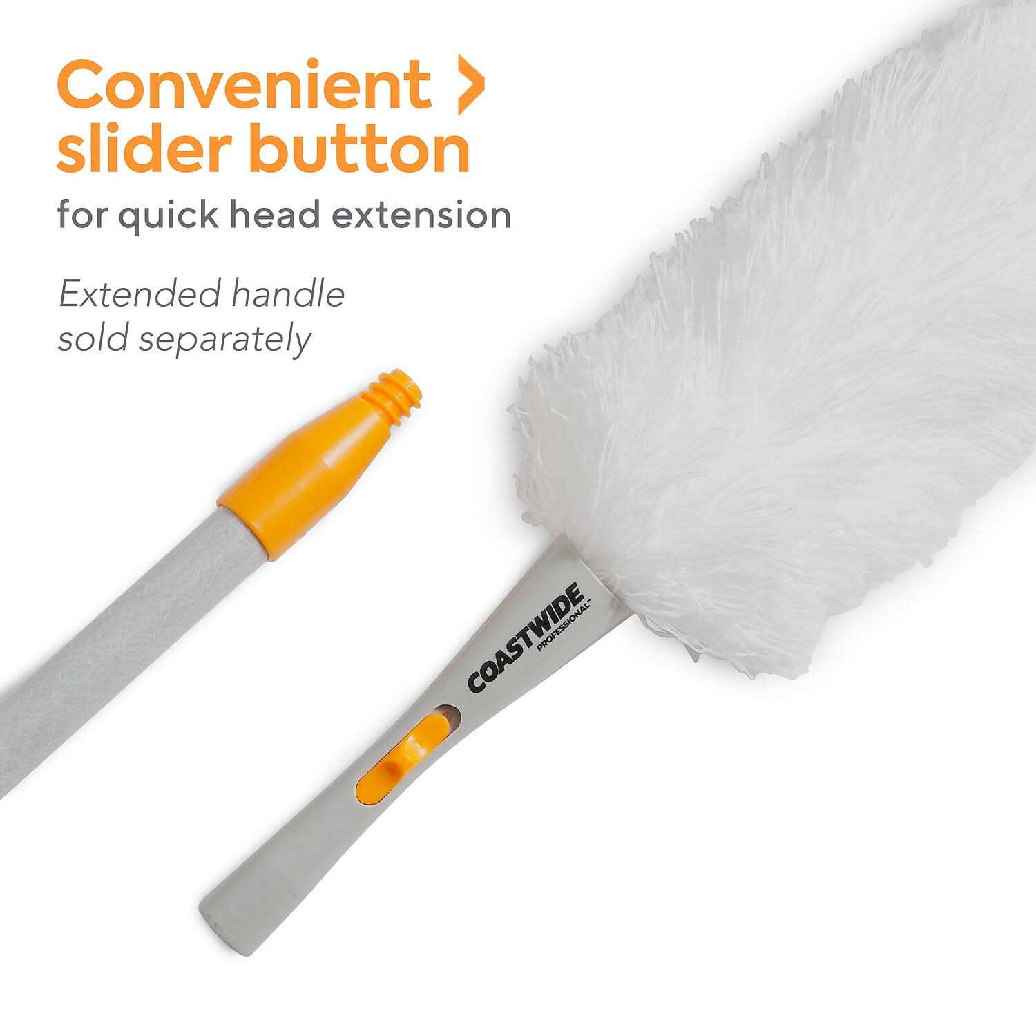 Expand your selection of cleaning tools with this versatile white microfeather duster. The synthetic microfibers offer durability and effectively remove dust and dirt, while the flexible duster head lets you get into tight hard-to-reach corners for thorough cleaning. Use compatible threaded handles to extend the reach of this duster. This Coastwide Professional gray microfeather duster has a compact size for easy storage. Duster traps more dirt to make cleaning easier. Holds dust until shaken. Comes in gray and made of microfiber. Fit for easy storage in small areas. Flexible head fits any dusting job. Compatible with threaded-tip handles for extended reach. For dust and debris removal on surfaces. Keep tabletops, shelves, and various surfaces clean and dust-free with this 18-inch Coastwide Professional gray microfeather duster.