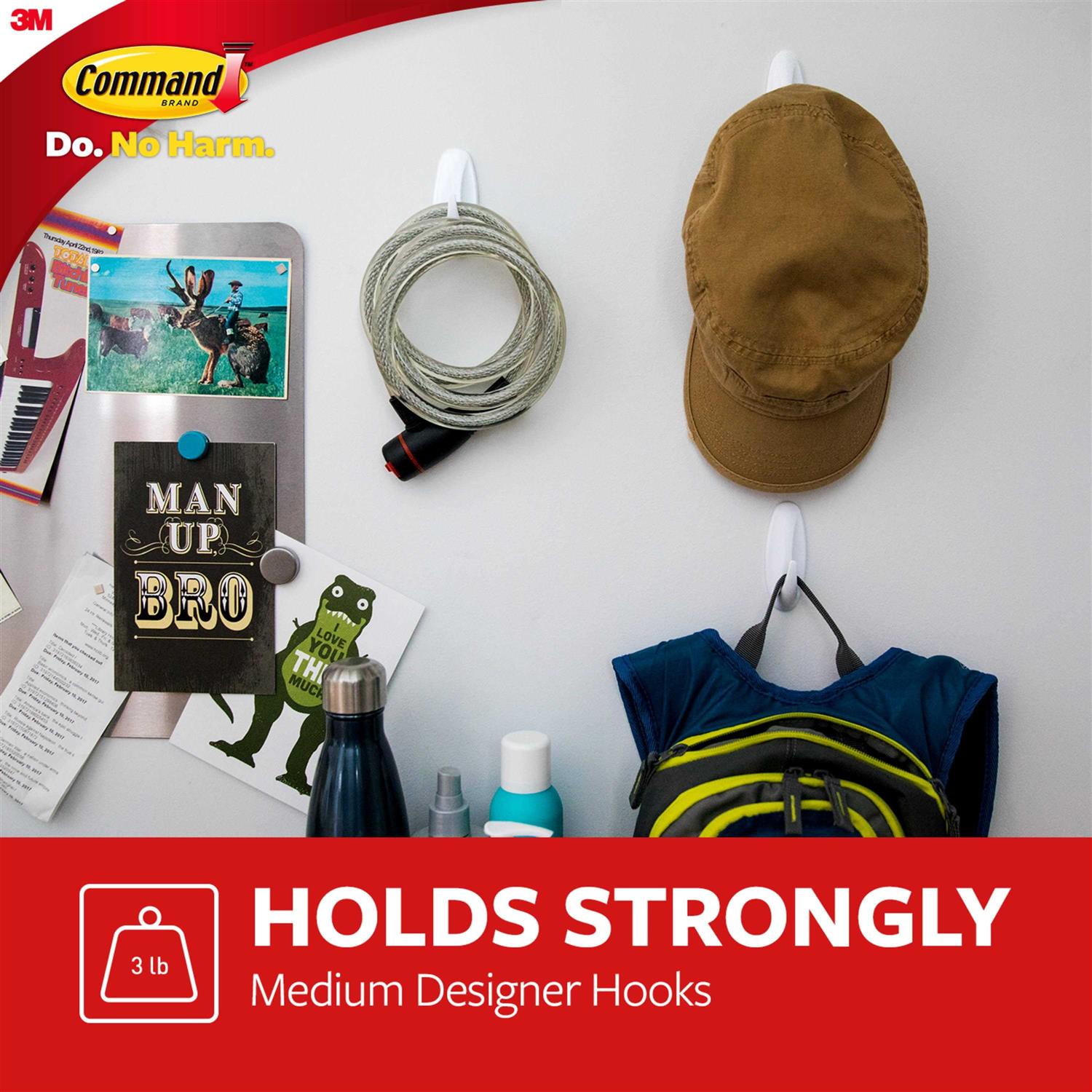 Command Medium Designer Hooks are our innovative solution for hanging office, kitchen and other household items securely and damage free. They hold strongly and remove cleanly using 3M stretch-release technology. Command Medium Designer Hooks are an innovative solution for hanging office, kitchen and other household items securely and damage free. They hold strongly and remove cleanly using 3M stretch-release technology. Damage-free hanging, holds strongly and removes cleanly. Easy to apply, no need for nails, screws or drills. Strips stretch off cleanly without leaving holes, marks or sticky residue. Suitable for most smooth surfaces including painted walls, tiles, metal and wood. Ideal for hanging coats, dog leads, towels and many other household items. Holding power: 1.3 kg.