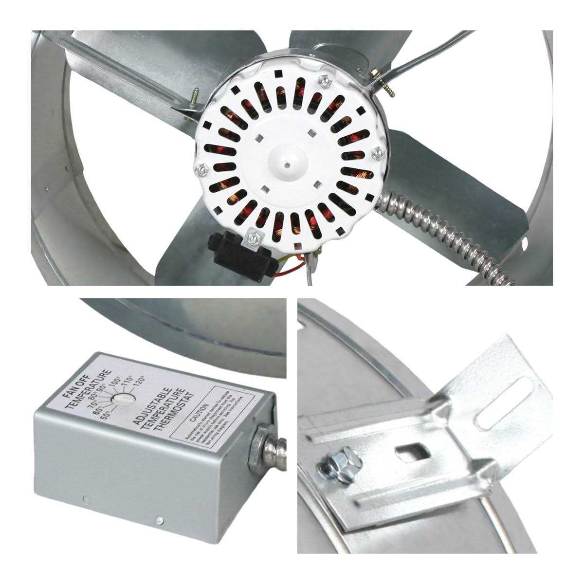 Our Maxx Air 1,300 CFM Gable Attic Fan is built to ventilate residential attic spaces up to 1,850 sq. ft. and is a great fit for situations in which roof-mounting is impractical. Constructed using a durable galvanized steel shroud and blades to resist heat distortion, and paired with a mounting system engineered to minimize vibration and ensure quiet operation. Install is straightforward with our easy to use mounting brackets and requires no special tools to complete. Our gable vent includes a pre-wired thermostat to run the exhaust fan only when you need it, minimizing it’s operational cost. This electric fan is designed to prolong the life of composition roof shingles by lowering summer attic temperatures and helps to protect attic insulation against mold and mildew in the winter by removing moisture-filled air. Install behind existing louvers or purchase our shutter model (CX2121AM), and swap your pre-wired thermostat for a thermostat/humidistat combo (XXDUOSTAT) for greater control. Mounts easily in gable behind louvers Provides adequate ventilation without modifying roofline Helps keep your home cooler and reduce utility costs Ventilates attic spaces up to 1,850 sq. ft. Galvanized steel shroud with precision balanced 14 in. fan blades Factory assembled for easy install-no holes in roof required. Includes bracket system for mounting. Easy to assemble.