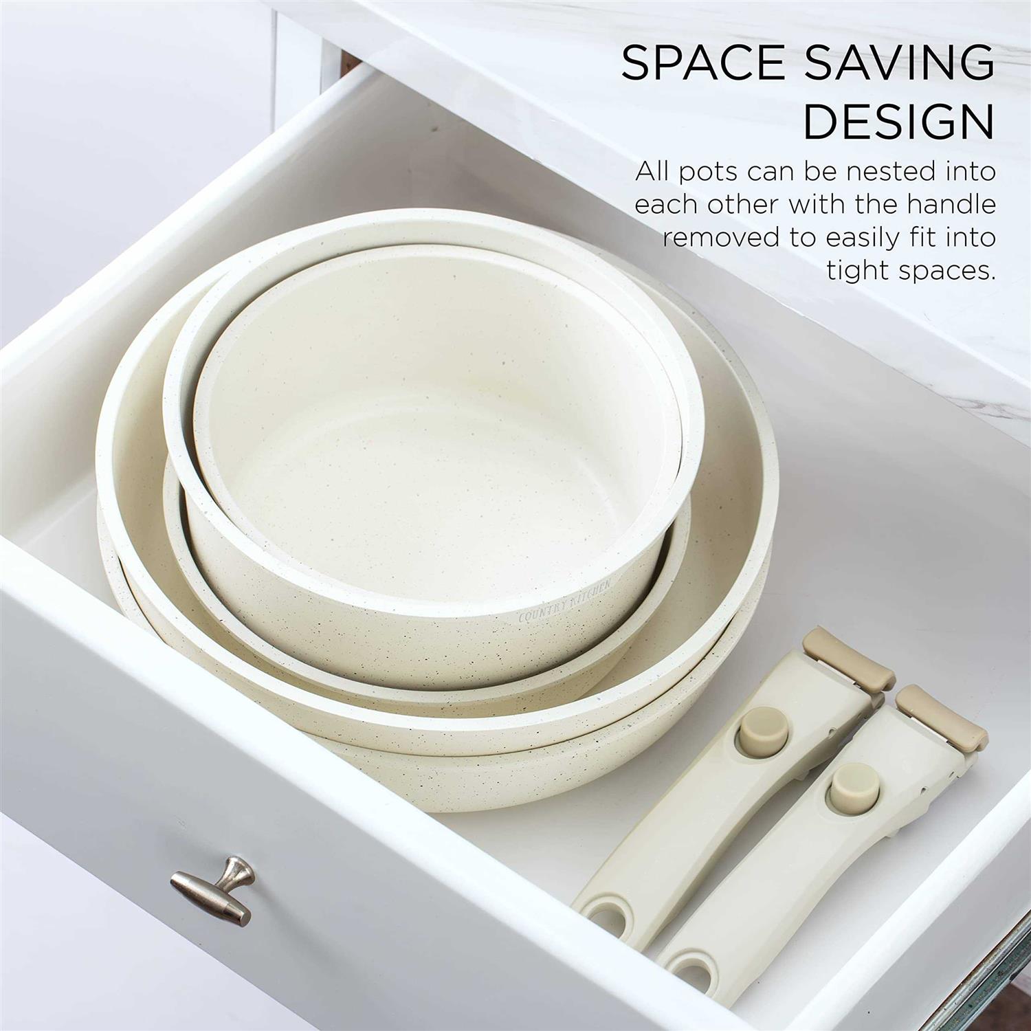 Country Kitchen 13 Piece Pots and Pans Set – Safe Nonstick Cookware Set Detachable Handle Kitchen Cookware with Removable Handle RV Cookware Set Oven