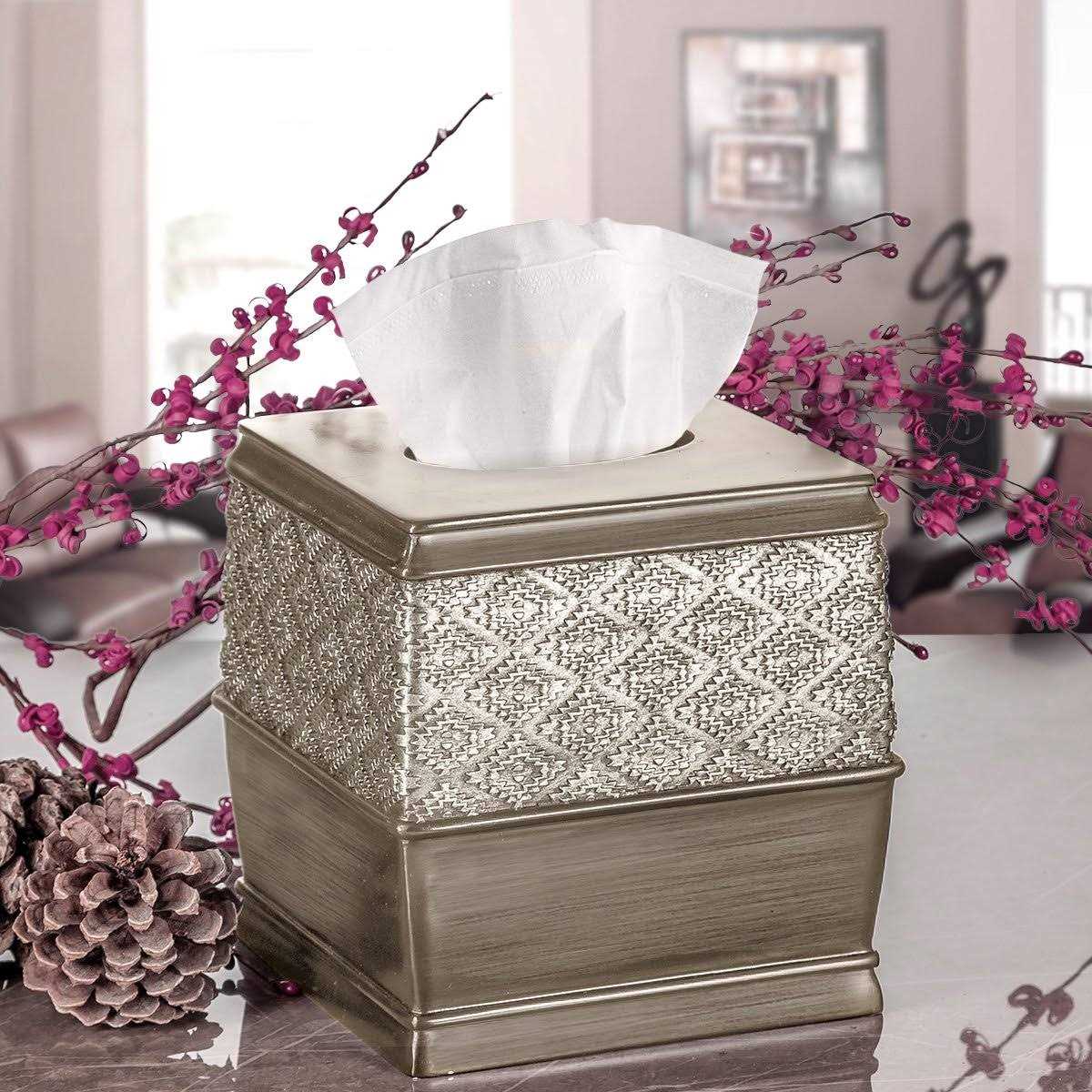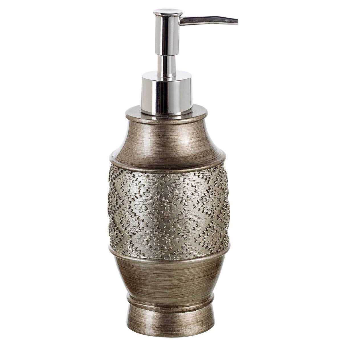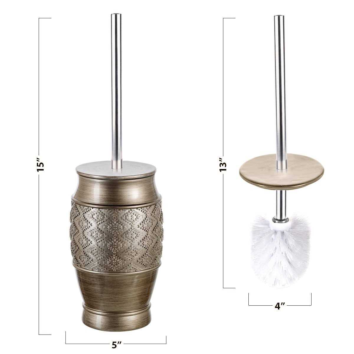 Put the finishing touches on your master bathroom with this six-piece bathroom accessory set. Sturdy resin material produces a strong set of accessories, and a brushed silvertone finish creates a metallic look for a stunning look. A texture diamond pattern on each piece ties together the set for a unified look.