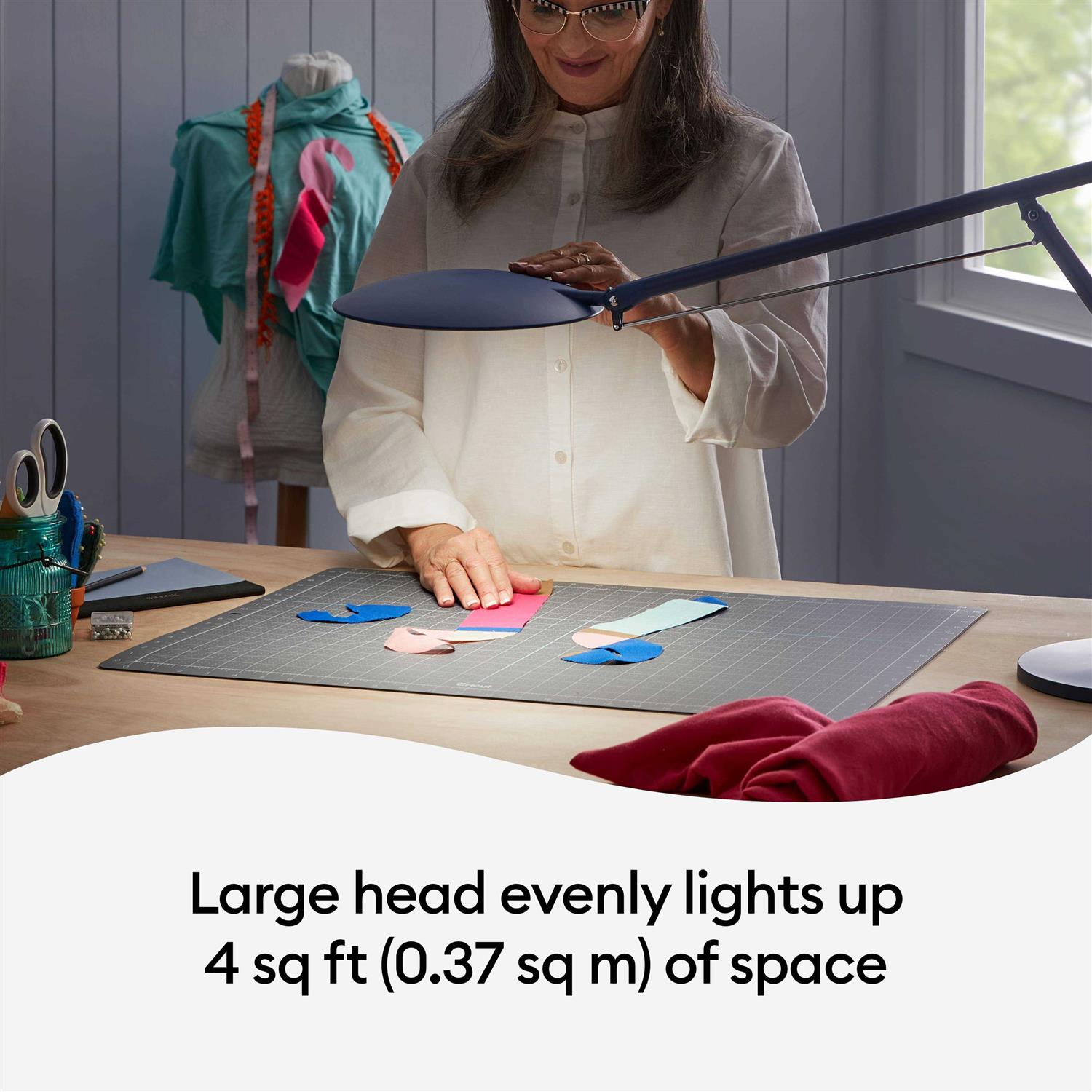 See your projects in a whole new light with Cricut Bright 360, the ultimate LED table lamp. Its large, broad head evenly lights up your entire workspace. With a gentle push of the hand, the lamp pivots, rotates, and easily glides into the just-right position for every craft. Whether youre working on a delicate accent piece or searching for the perfect matching shade, youll see colors and details with exceptional clarity. A high 95 CRI (Color Rendering Index) means your colors will appear more accurately than with a traditional bulb. Use the sleek sliders to adjust brightness (up to 1500 lux) as well as light color temperature (warm to cool white) to cast ideal light in any space. Comfortably see every detail with less glare, hotspots, and eye strain. From mid-craft to final project photos, Cricut Bright 360 shines light your way.