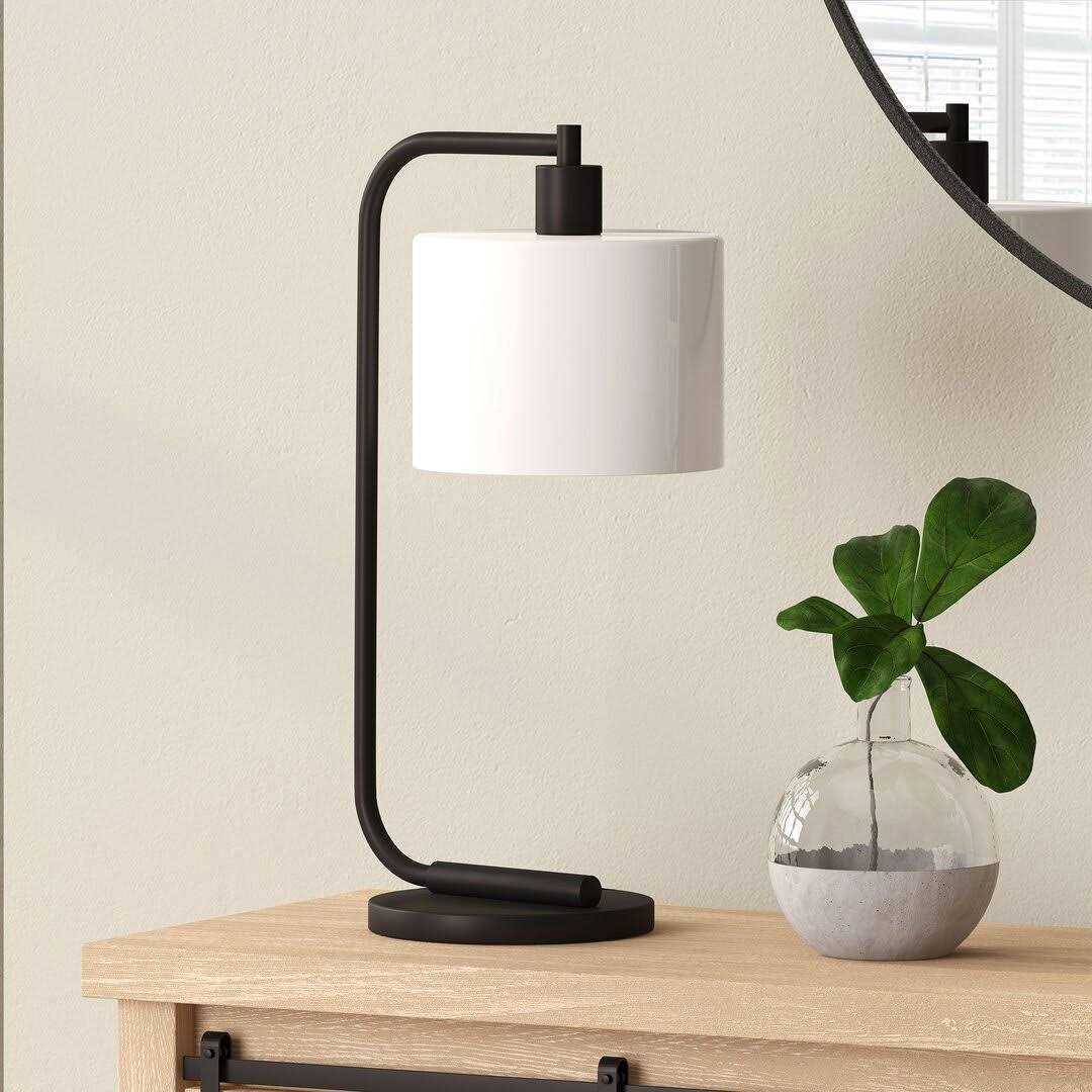 Dayla 20.5″ Arched Table Lamp George Oliver Base Color: Black, Shade Color: White