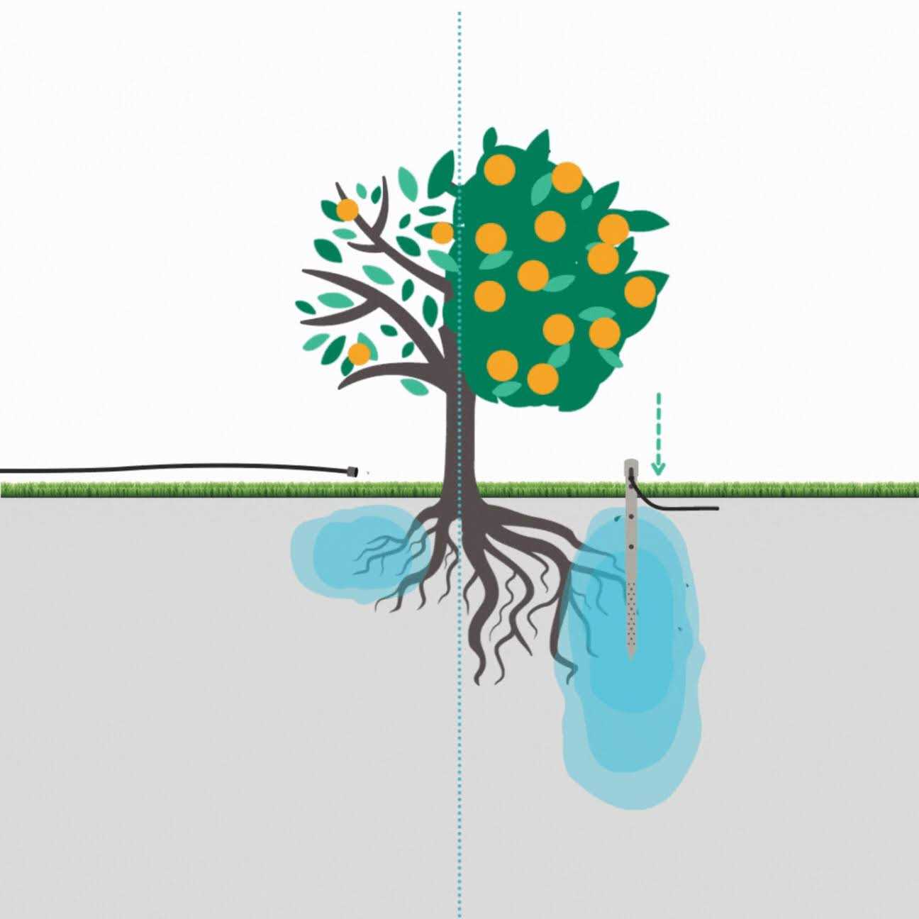 - Waters, fertilizes, and aerates directly at the roots