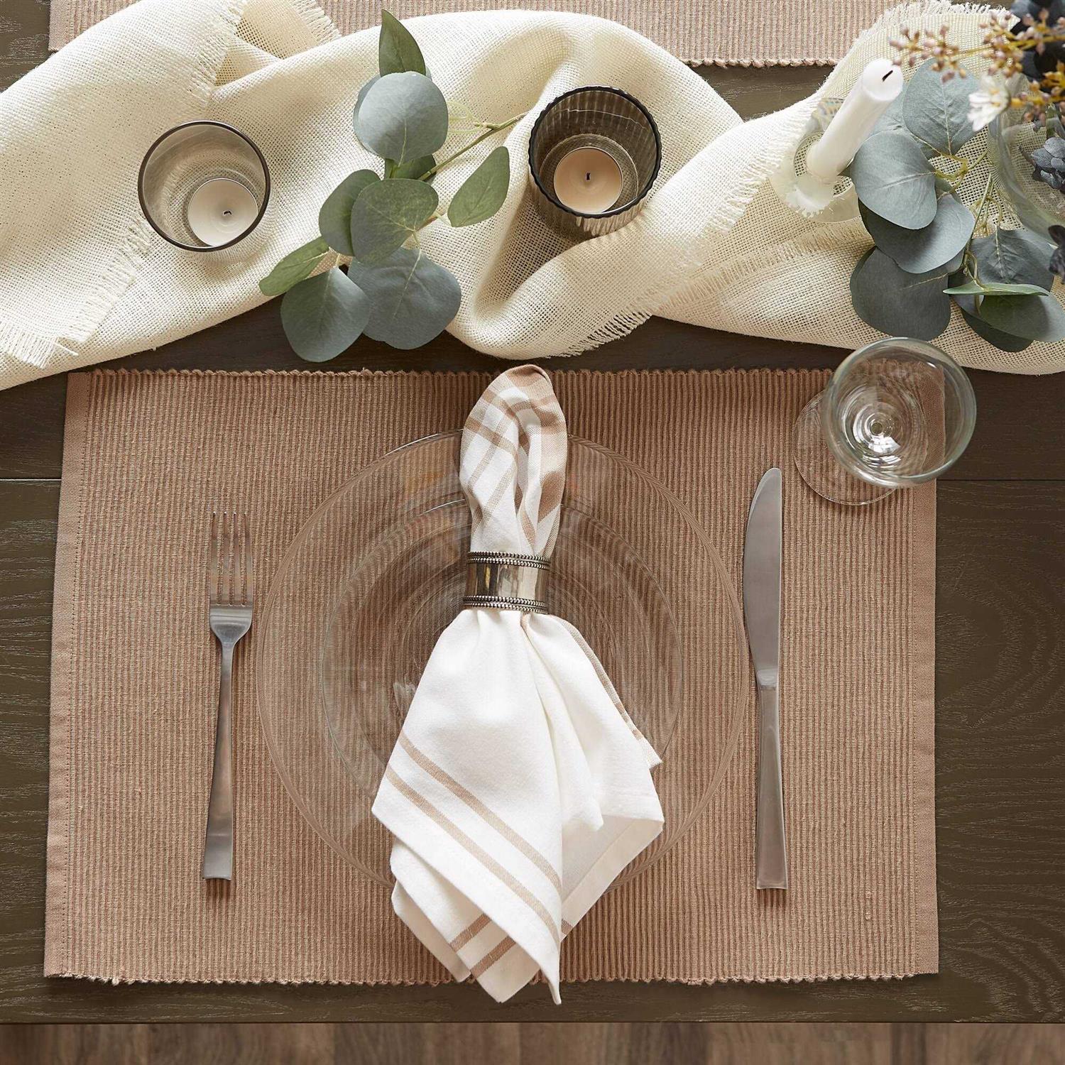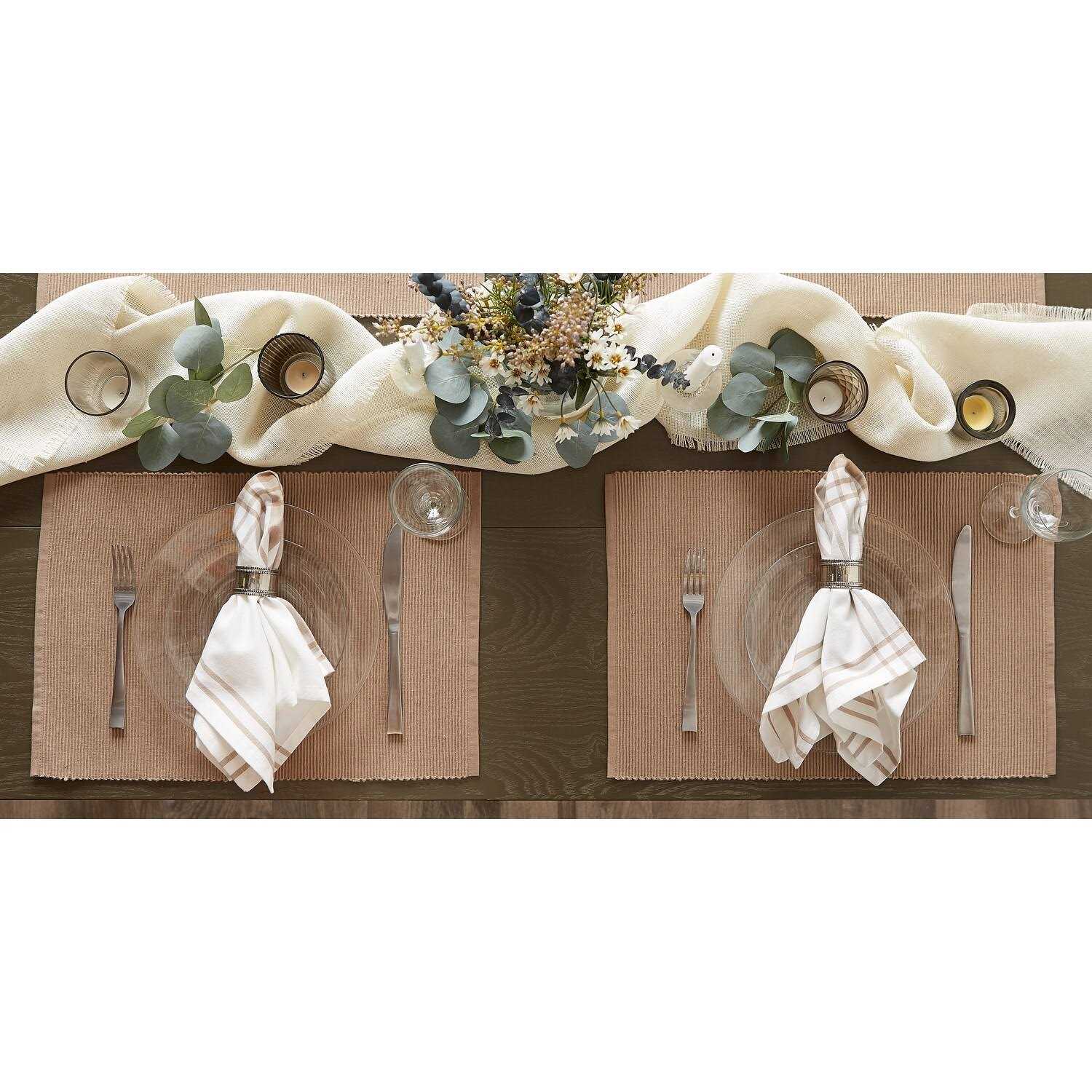 Rectangular placemats measure 13×19 inch made of 100% five ply cotton they are a staple for every kitchen. Have a mess? These are easy to care for, simply throw in the wash to clean and lay flat to dry. With a large variety of color options these can be mixed and matched and swapped out depending on the season. Entertain guests and serve a big meal with all the fixings on our placemats year after year! These solid ribbed mats are a great basic to dress up into a formal meal or for something casual. Easily adds texture and interest to any table. DII offers delightful home products including themed cloth napkins, napkin rings, table runners, and tablecloths. Click the DII link at the top of the page to explore our collections or search “DII Table Tops”.