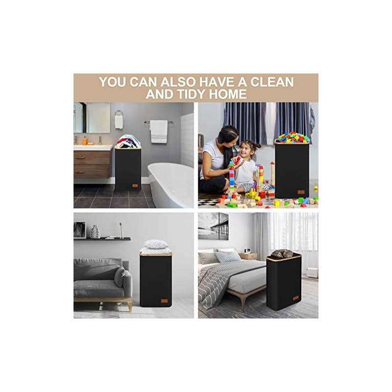 LDEAL CHOICE FOR HOME: 110L Laundry hamper with lid can meet all your needs. It can be used as a dirty clothes hamper, but also can be used to store toys, clothes, blankets, and other sundries.hamper with lid for bathrooms, bedrooms, laundry rooms, dorm room. The DOFASAYI laundry basket makes your home super warm and charming. LARGE CAPACITY LAUNDRY BASKETS: This foldable Laundry hamper with lid is sturdy and durable, enough for a family. clothes hamper has enough space to collect clothes for the week. The capacity is 110 liters. Length 16.6 x width 13.4 x height 28.8 inches. Compared with other laundry hamper, hamper with lid is very strong, stable, and large in capacity, without annoying collapse. EASY TO CARRY: Laundry basket is made of natural bamboo material and thick cationic cloth. Bamboo looks super stylish. The hamper is very light and has a handle, so you can effortlessly send dirty clothes directly to the washing machine. FOLDABLE DESIGN: Large laundry hamper with lid can be easily folded when not in use, which saves space and is convenient for storage. The humanized foldable design brings more convenience to your life. The height of the folded hamper is 1.5 inches. The laundry hamper is also suitable for camping and RV trips. LAUNDRY HAMPER WITH LID: Our hamper with lid is a practical and economical solution that allows you to store dirty clothes discreetly and elegantly.The laundry hamper with lid design can make your home more tidy and clean.