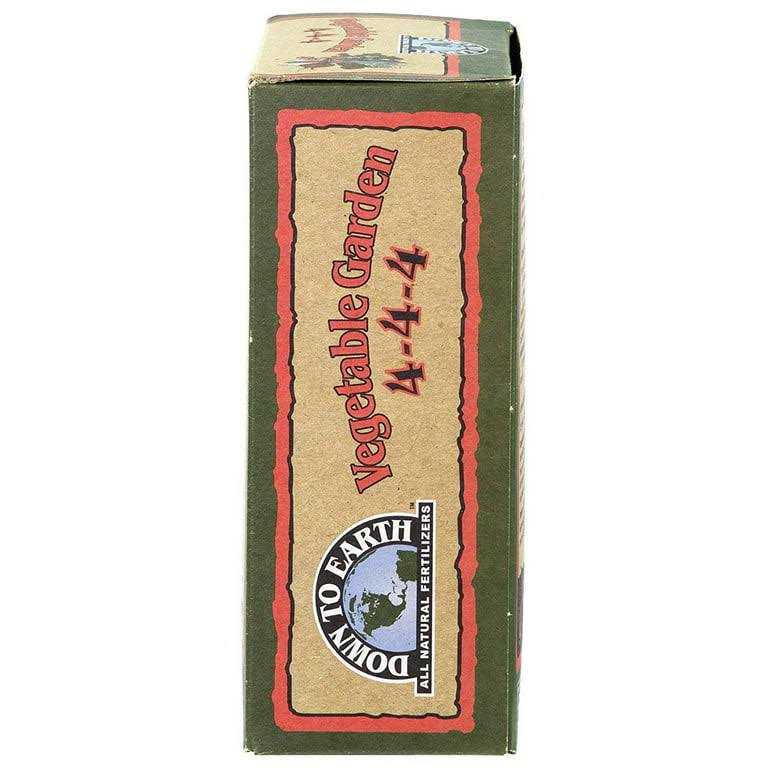 - Down to Earth Vegetable Garden is a one pound box of all natural fertilizer with 4-4-4 formula.