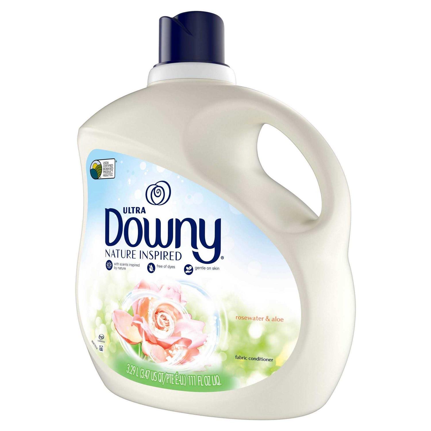 Downy Nature Blends Rosewater and Aloe is a 70percent plant-based fabric conditioner (fabric softener) with a touch of coconut oil. It condistions fibers to make clothes softer and fresher with every wash. It’s free of dyes and parabens, and is a USDA-certified 7-percent bio-based product, making it gentle and safe for your family. Compatible with HE and non-HE washing machines, Nature Blends is the must-have, plant-based addition to laundry day. Just add a capful with your favorite detergent to help clothes keep their natural shape.