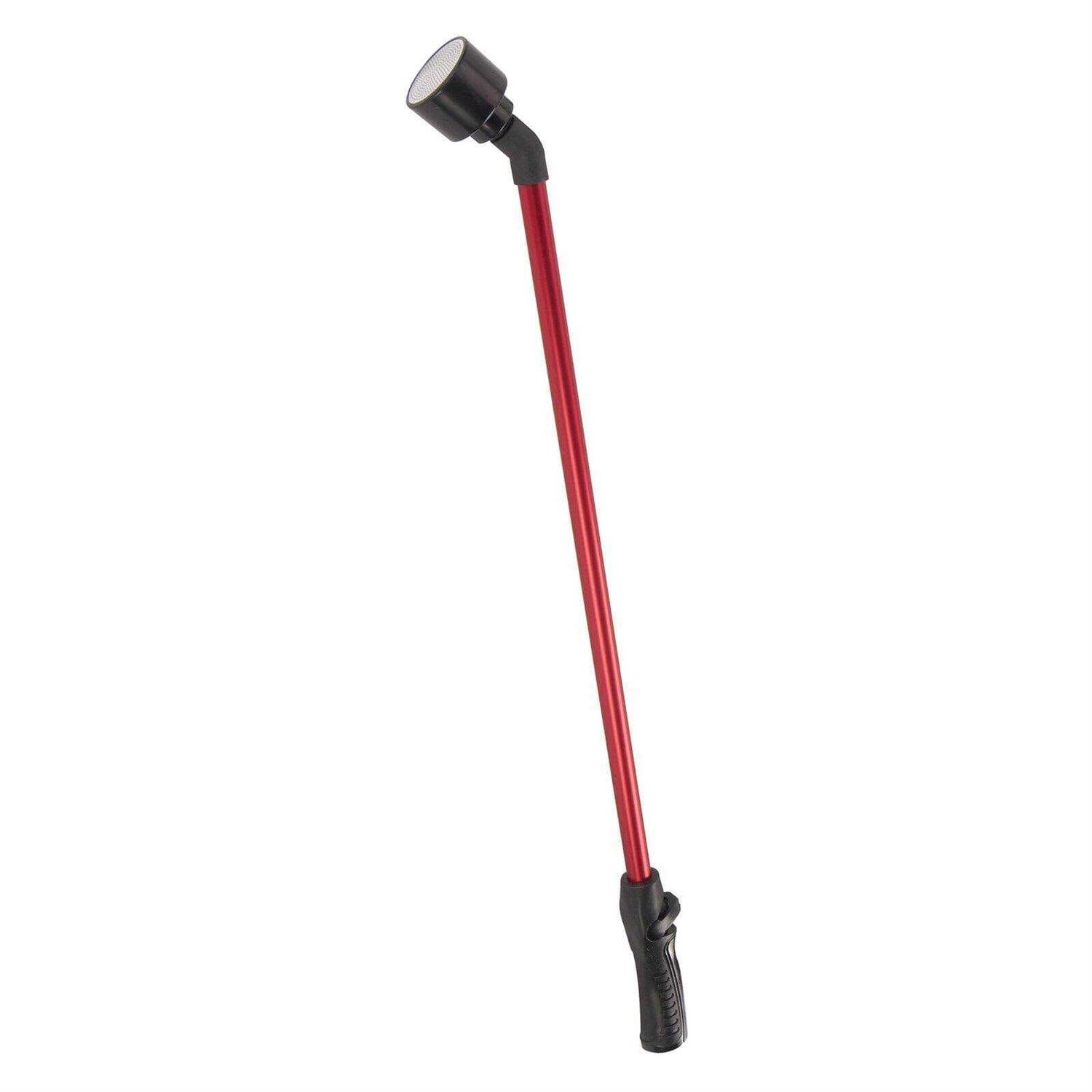 One Touch water wand incorporates a 1-touch lever activated valve with an ergonomic insulated grip. Move thumb to turn water on or off. Saves water while watering from one plant to the next. Made with aluminum tube making it lightweight. Features rubber over mold at the bend for additional protection. Metal thumb activated valve for durability with rubber over mold for comfort.